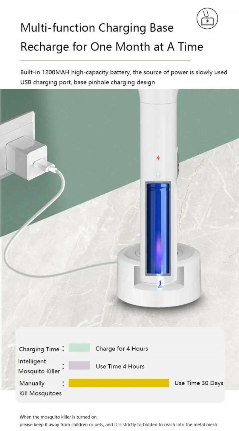 2. Базовая Зарядка: зарядка, когда вы его вынимаете, во время зарядки, вы можете включить режим убийца комаров