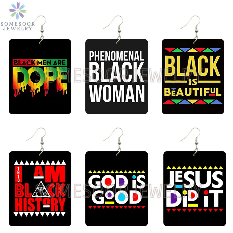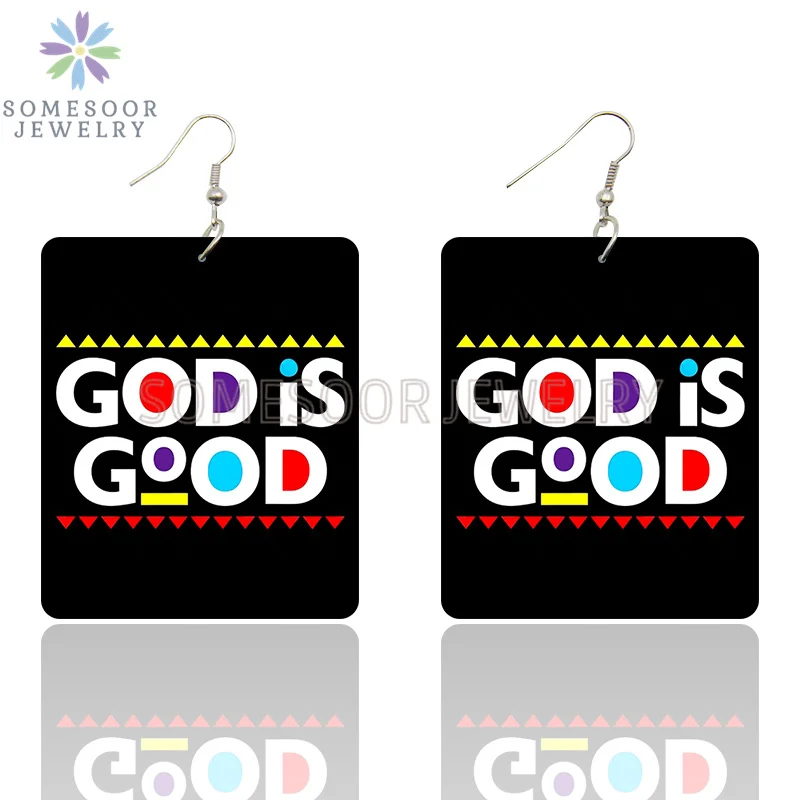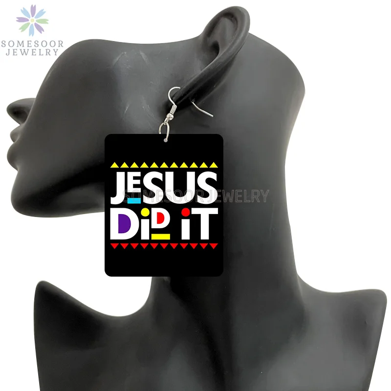 SOMESOOR феноменальные черные женские высказки, принт допинг, деревянные висячие серьги с Иисусом, Бог хорошего вдохновения, висячие украшения для женщин, подарок