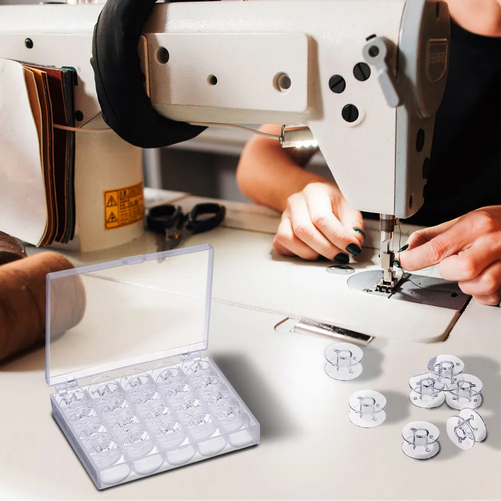 Горячая Распродажа 2021, 25 шт. пустых катушек, искусственная прозрачная пластиковая коробка для хранения чехлов для Brother Janome Singer Elna Drops