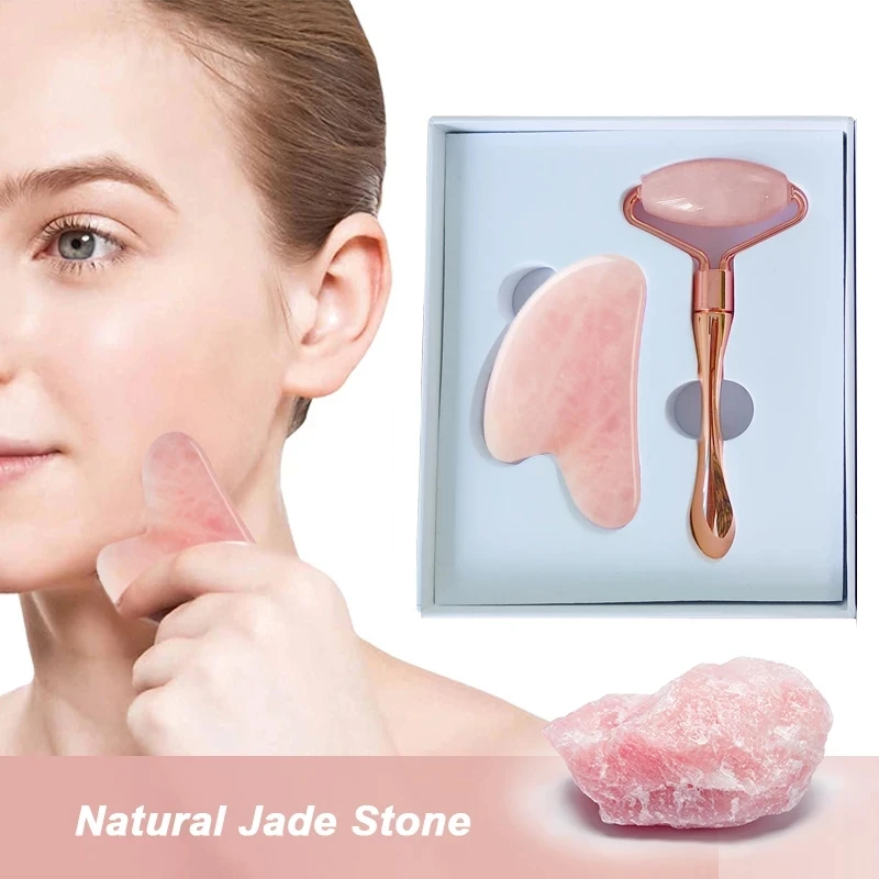 2 шт.компл. нефритовый валик гуаша массажер для лица из розового кв...