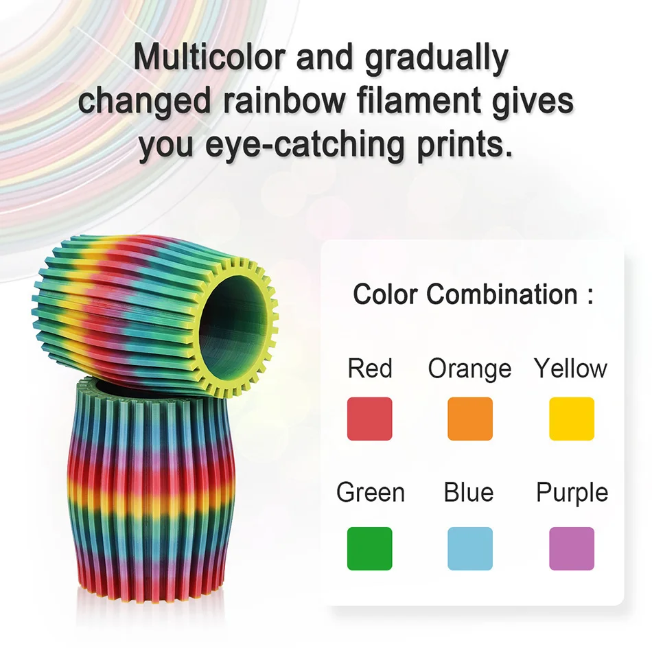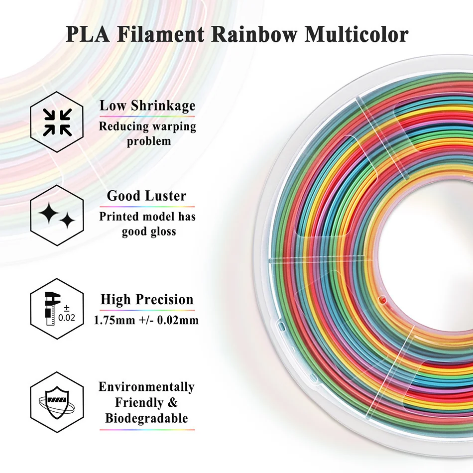 Нить PLA Радужная SUNLU, 1,75 мм, для 3D-принтера, с эффектом радуги, меняет цвет каждые 18 метров