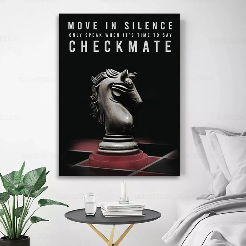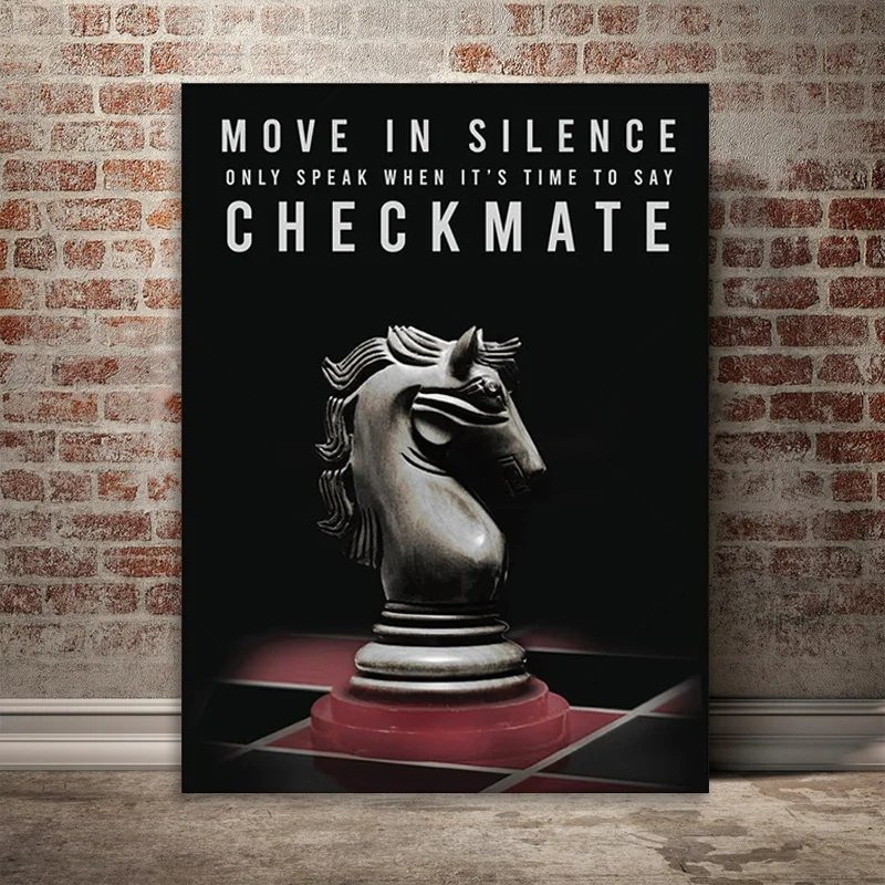 Двигайтесь в тишине, говорите, только когда пришло время сказать checkmate. Настенное искусство домашний декор Холст принты мотивационные шахматы постер покраска