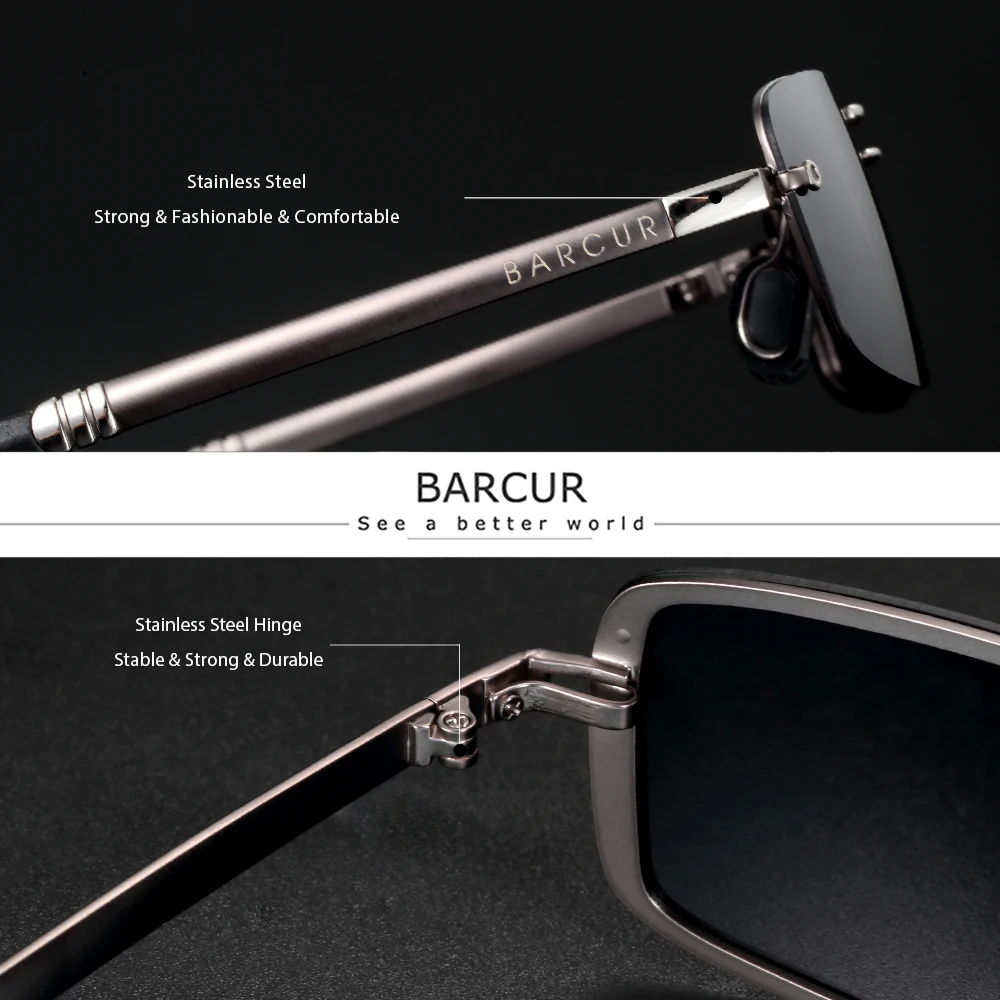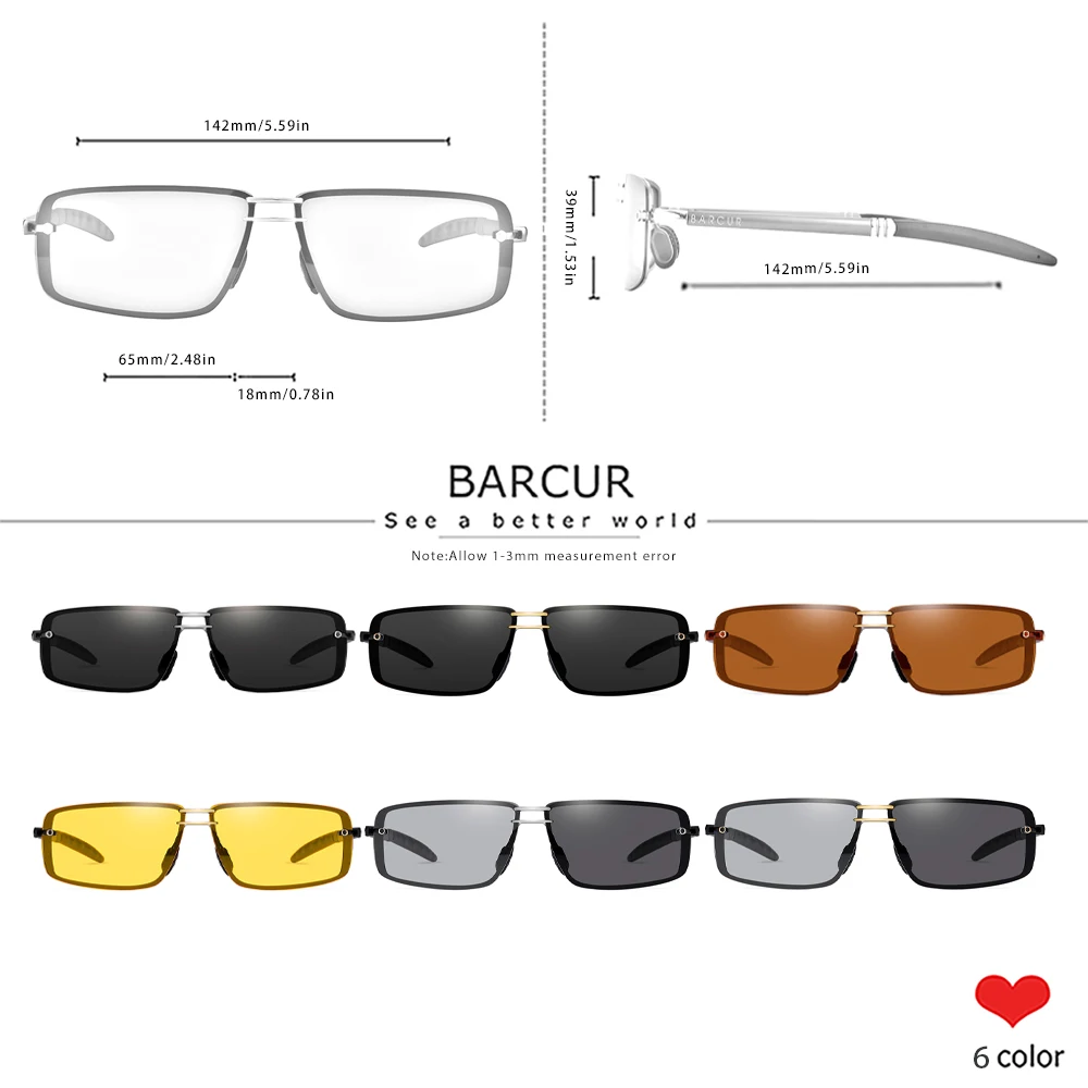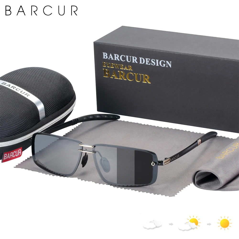 Мужские поляризационные солнцезащитные очки BARCUR, Прямоугольная оправа, солнцезащитные очки для вождения, пешего туризма, фотохромные очки UV400 Oculos Gafas De Sol