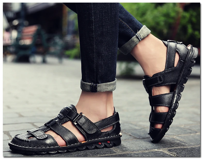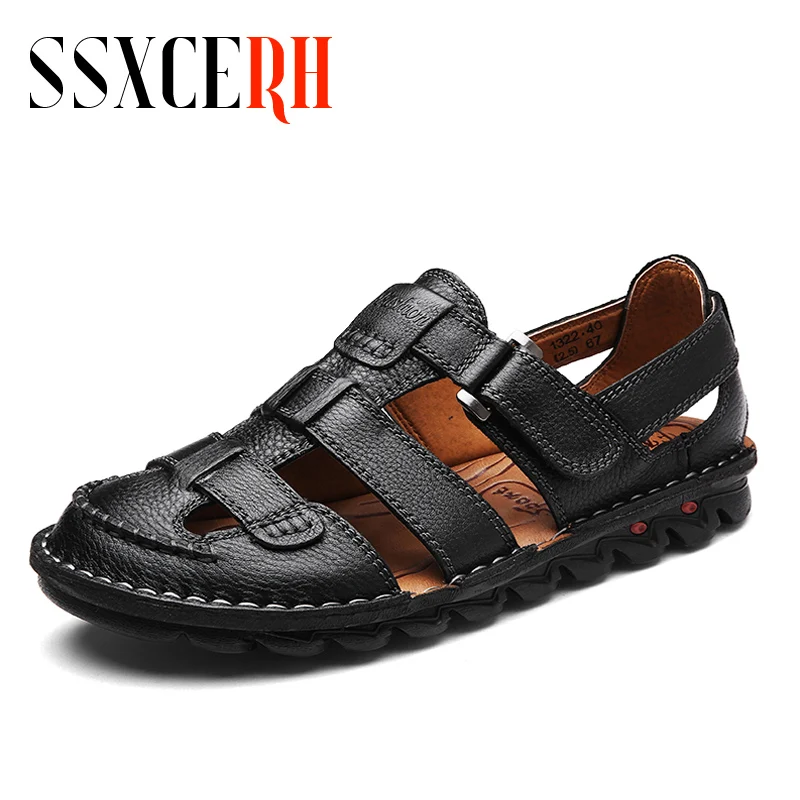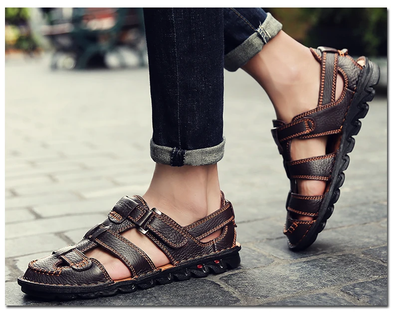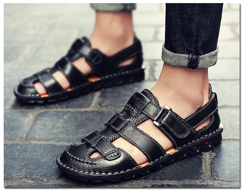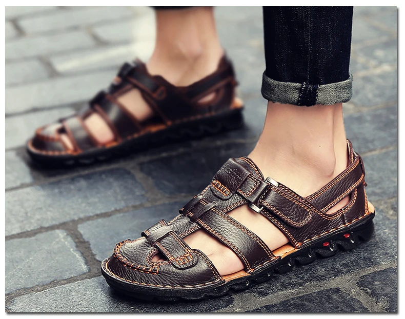 Мужские сандалии из коровьей кожи, классические уличные сандалии ручной работы, модная удобная Пляжная кожаная обувь, размер 48