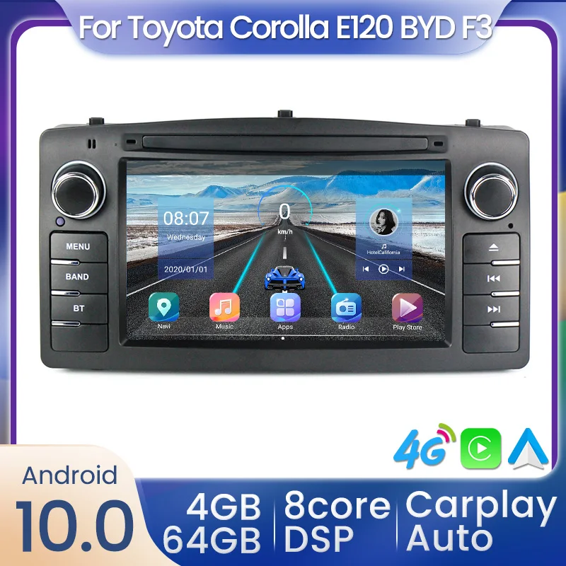 8-ядерный автомобильный DVD-плеер на Android 10,0 DSP для Toyota Corolla E120 BYD F3, мультимедийный стерео-плеер для Carplay, автомобильное радио, GPS-навигация, Wi-Fi