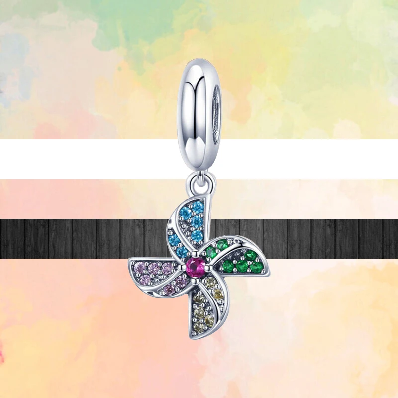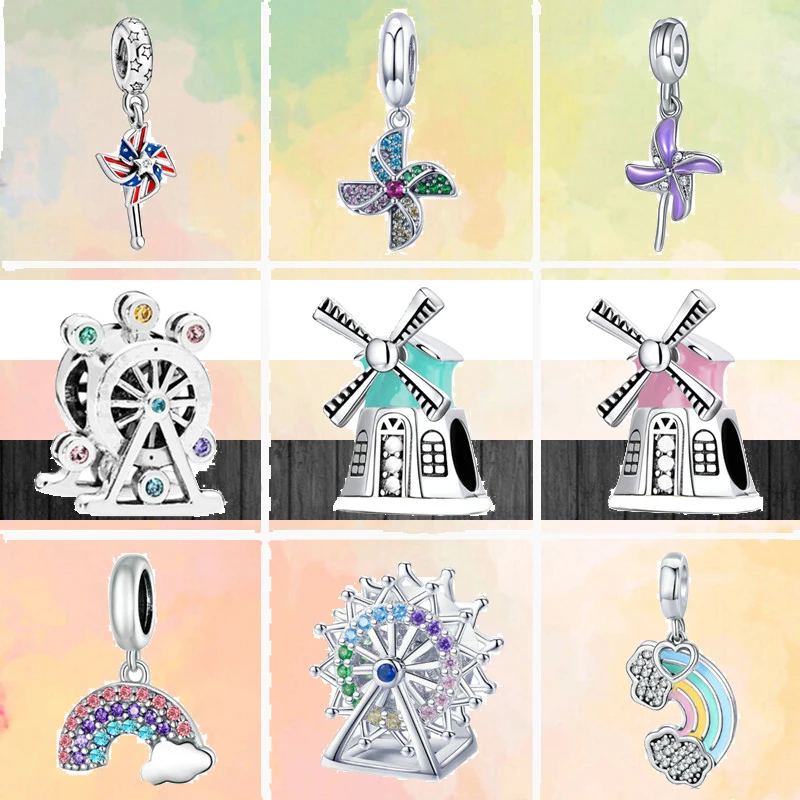 Новинка 2021, бусины в виде ветряной мельницы, колеса обозрения, цветные радужные бусины сделай сам, подходят к оригинальным шармам Pandora, браслет серебряного цвета, женские роскошные украшения
