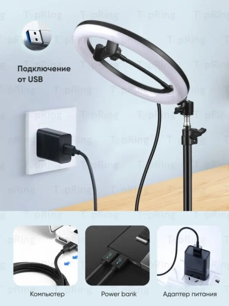 Кольцевая лампа ЛУЧШАЯ со штативом лучшая на AliExpress по цене/качеству! Заказывайте без сомнений! Каждый комплект проверяем вручную! Обязательно посмотрите фото и видео! Кольцевая лампа со штативом идеально подходит деткам для ТикТок! Кольцевая лампа с эффектом Ангельские глазки. Кол-во LED: 210. Мощность: 27 Вт. У кольцевой лампы регулируется яркость (от минимума до максимума) и цветовая температура. Цветовая температура кольцевой лампы представлена в 3 (трех) стандартных режимах (теплый, нейтральный, холодный ). В комплекте с кольцевой лампой идет металический штатив на трех ножках, регулируется по высоте до 2м. Кольцевая Лампа со штативом оборудована держателем для телефона. Держатель подходит под любой смартфон, и его можно зафиксировать в любом положении!