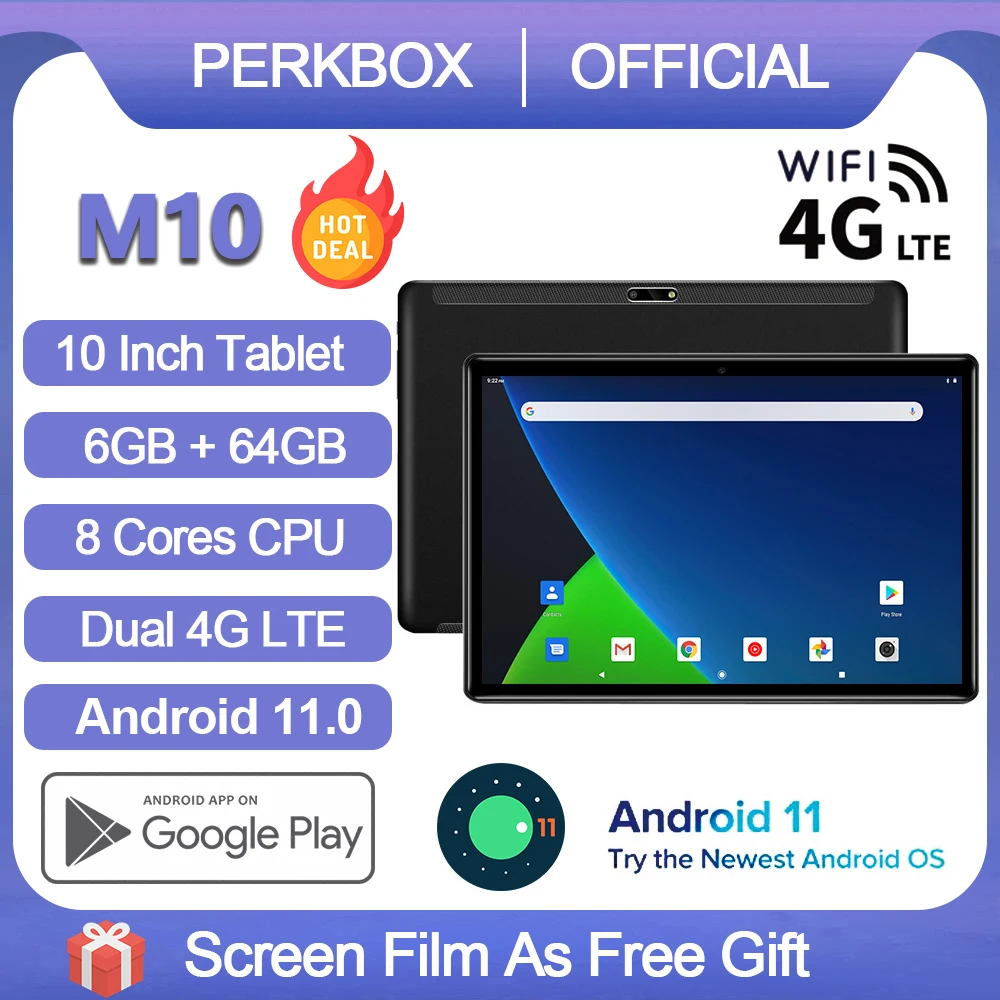 Восьмиядерный процессор + 6 ГБ ОЗУ 64 Гб ПЗУ + новая система Android 11.0 + WIFI 4G LTE сеть + 10 дюймов 1280*800 IPS экран + порт USB Type C