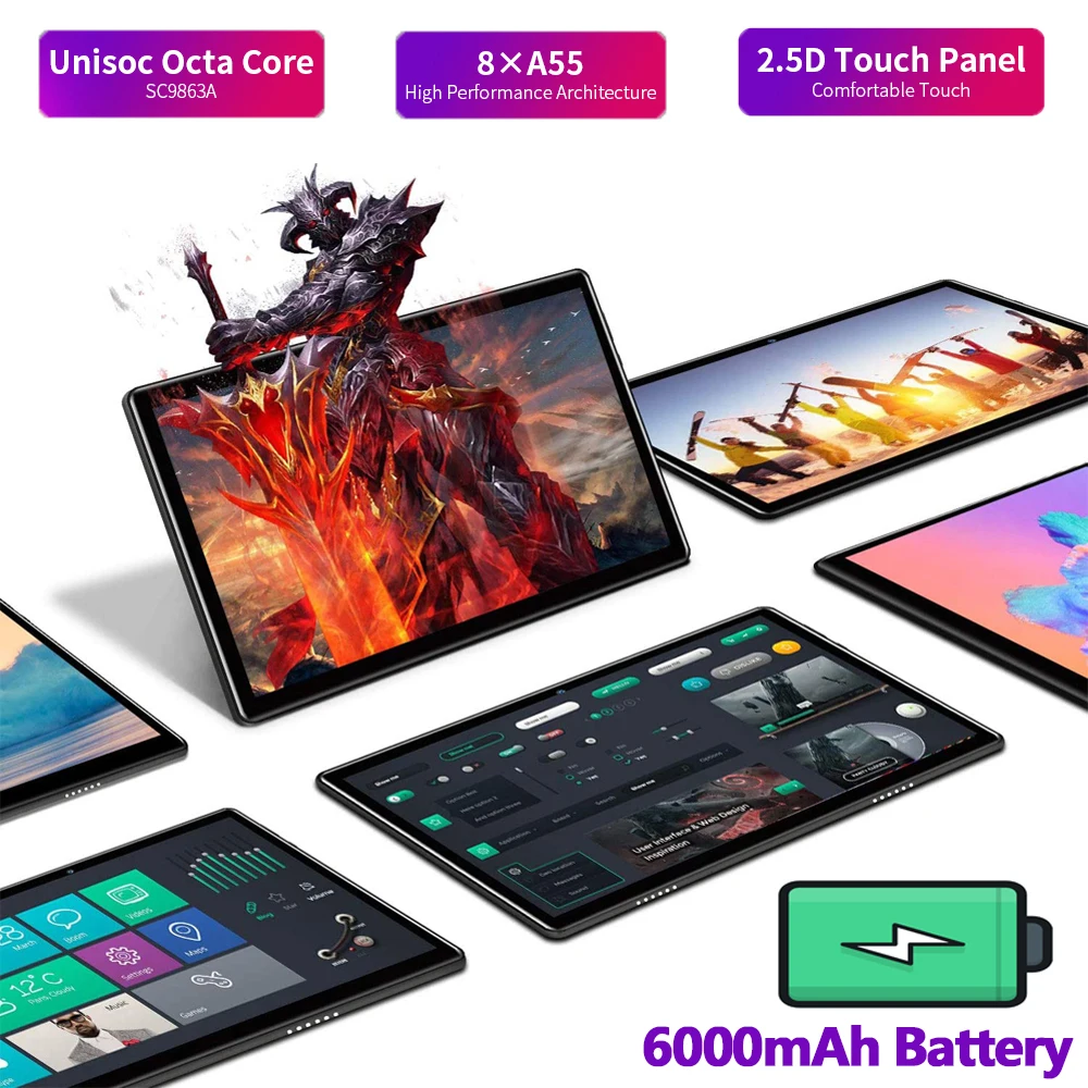 -> Благодаря аккумулятору 6000 мАч вы можете наслаждаться планшетом в течение всего дня-> Type-C обеспечивает более высокую скорость зарядки, чем Micro USB.