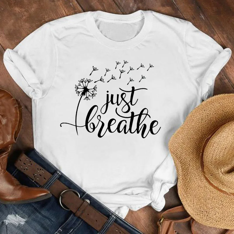 Женская футболка с коротким рукавом, Повседневная футболка с круглы...
