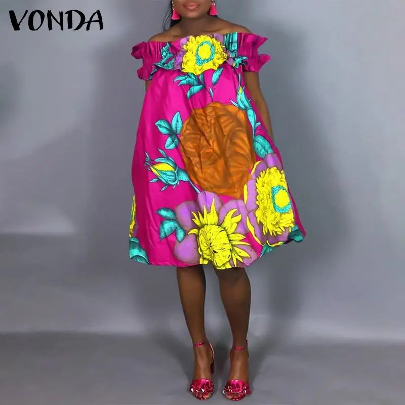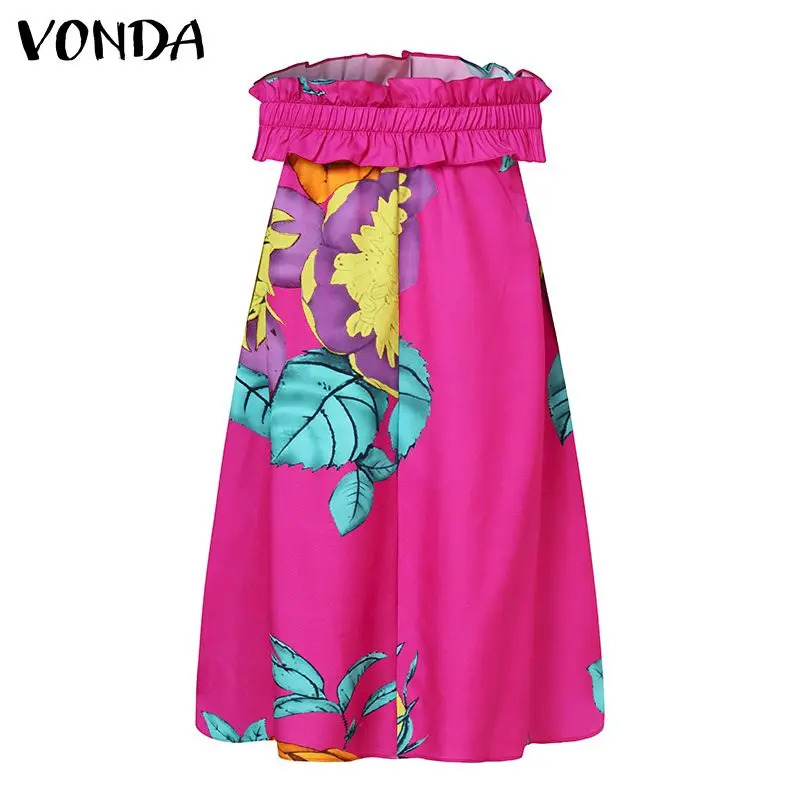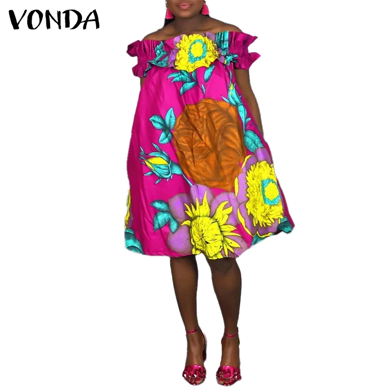 Летнее короткое платье без рукавов VONDA, женские сексуальные платья без бретелек с открытыми плечами и цветочным принтом, богемные платья, сарафан большого размера