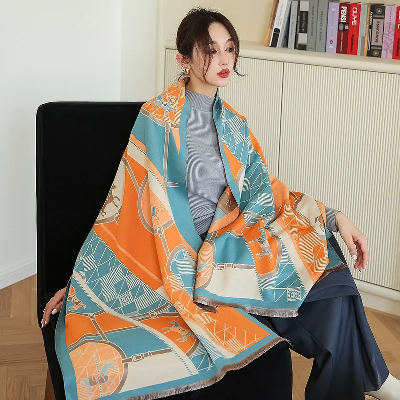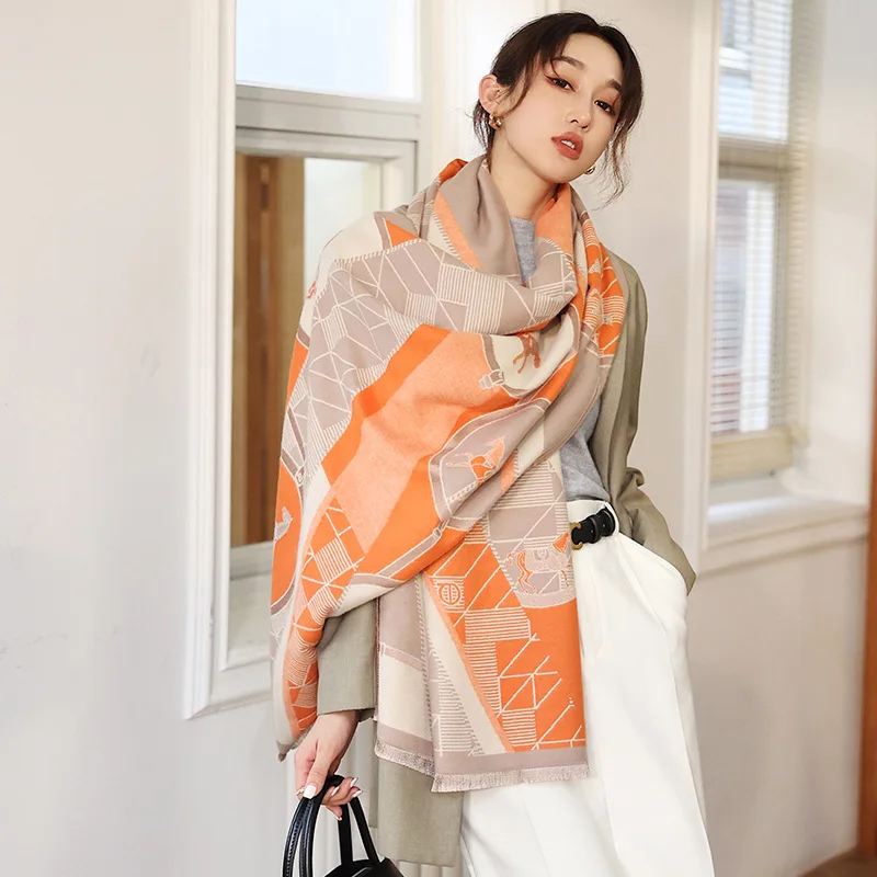 Толстый кашемировый шарф для женщин, Роскошные зимние теплые шали и...