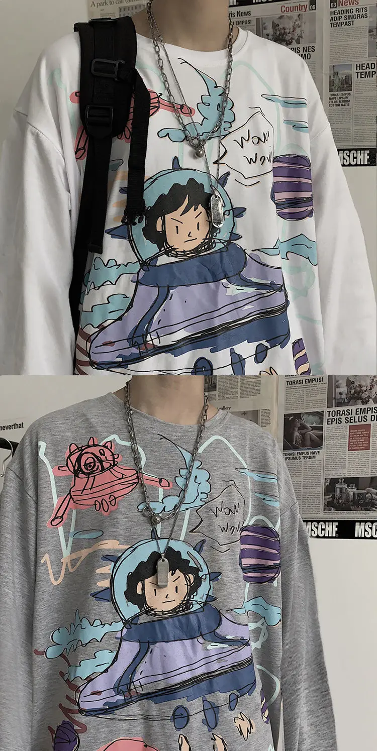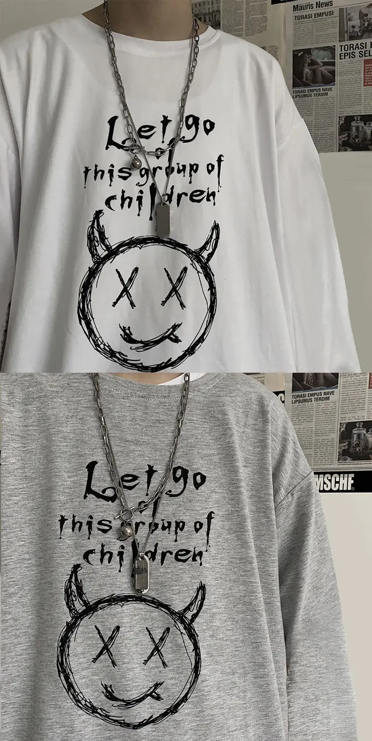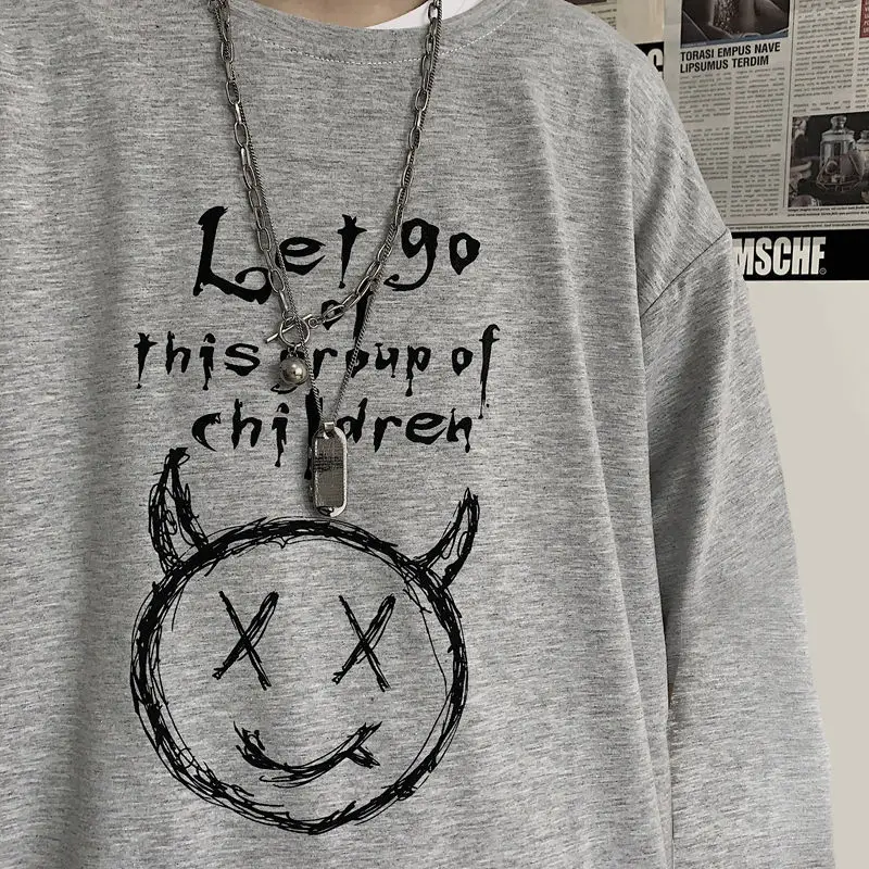 Футболка мужская Harajuku, с длинным рукавом, в готическом стиле, с винтажным принтом, уютная, модная, уличная, мешковатая, Корейская, модная, хип-хоп