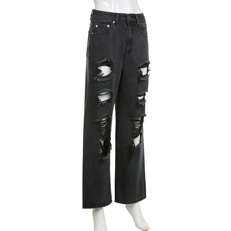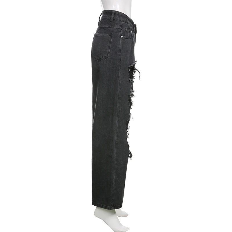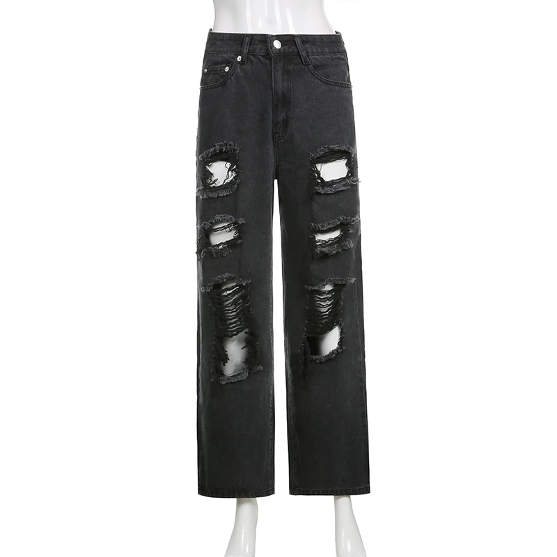 Черные хип-хоп брюки для женщин, повседневные мешковатые джинсы в стиле Харадзюку с высокой талией, женские джинсовые брюки в Корейском стиле