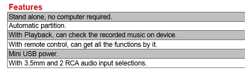 Записывайте аналоговую музыку на USB-накопитель или SD-карту, на компьютере не требуется автоматическое разделение каждой песни с воспроизведением.