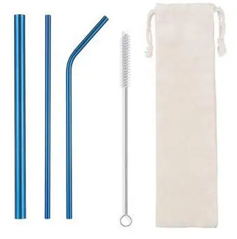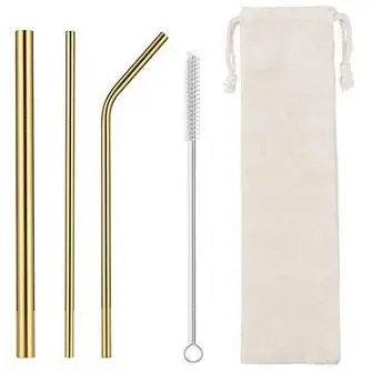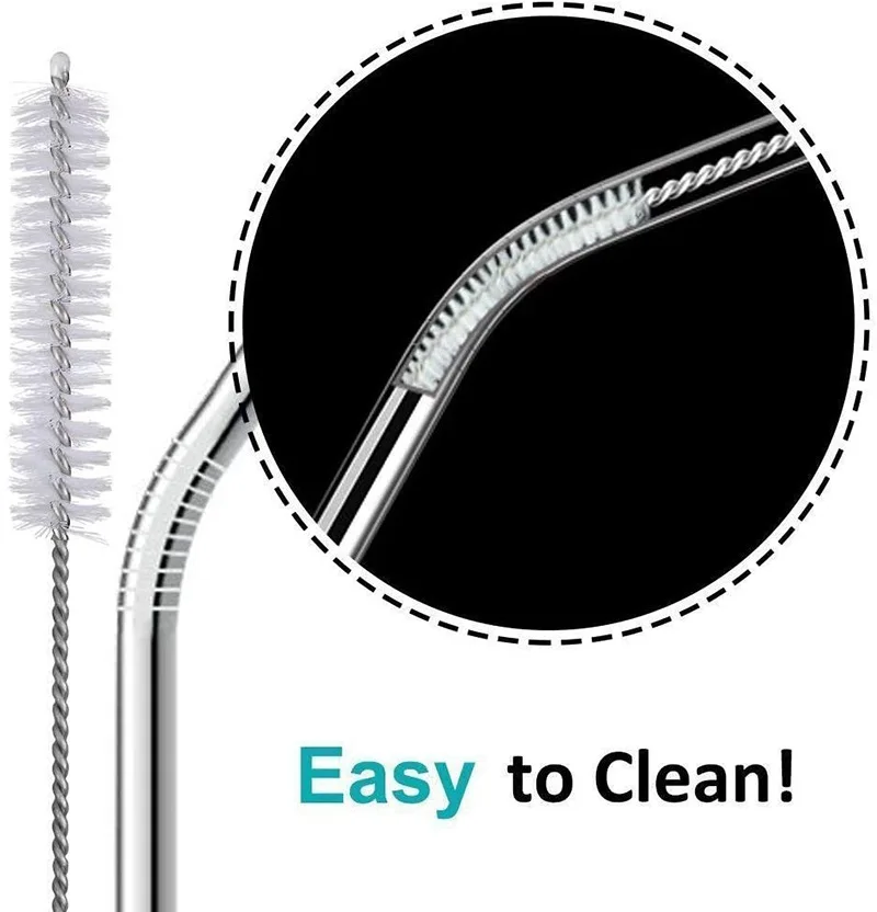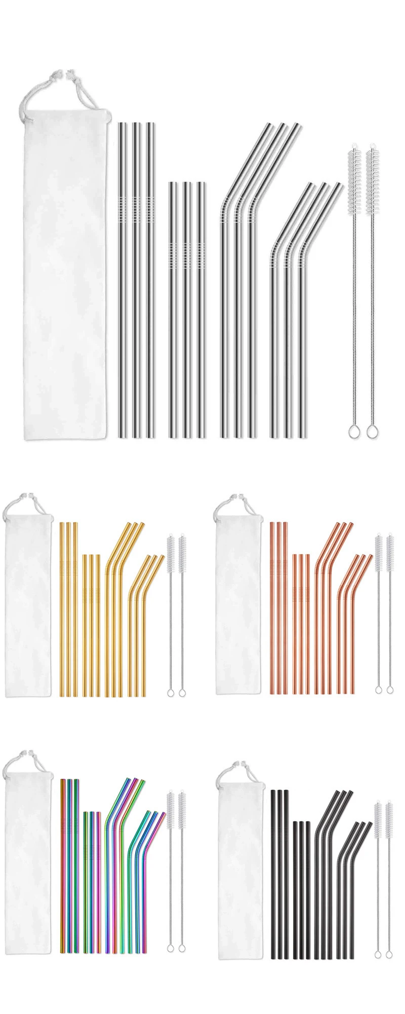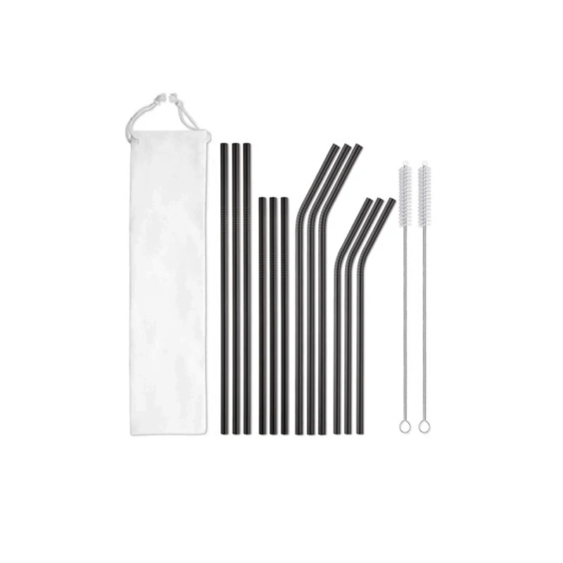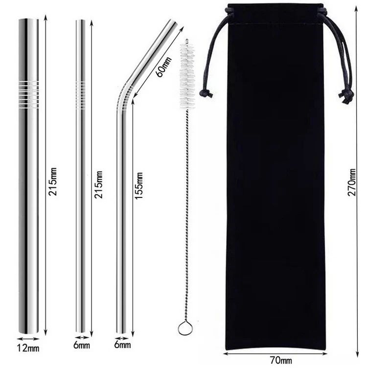 Металлические многоразовые соломинки из нержавеющей стали 304, прямая изогнутая соломинка для питья с чехлом, набор чистящих щеток, аксессуар для вечевечерние и бара YJN, 1 комплект