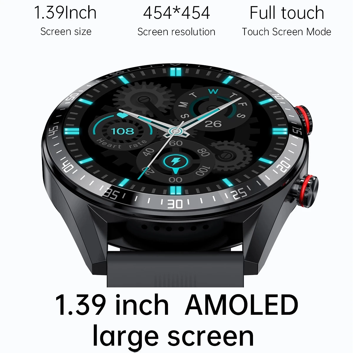 Смарт-часы мужские с экраном 454 х 454 AMOLED, поддержкой bluetooth и TWS