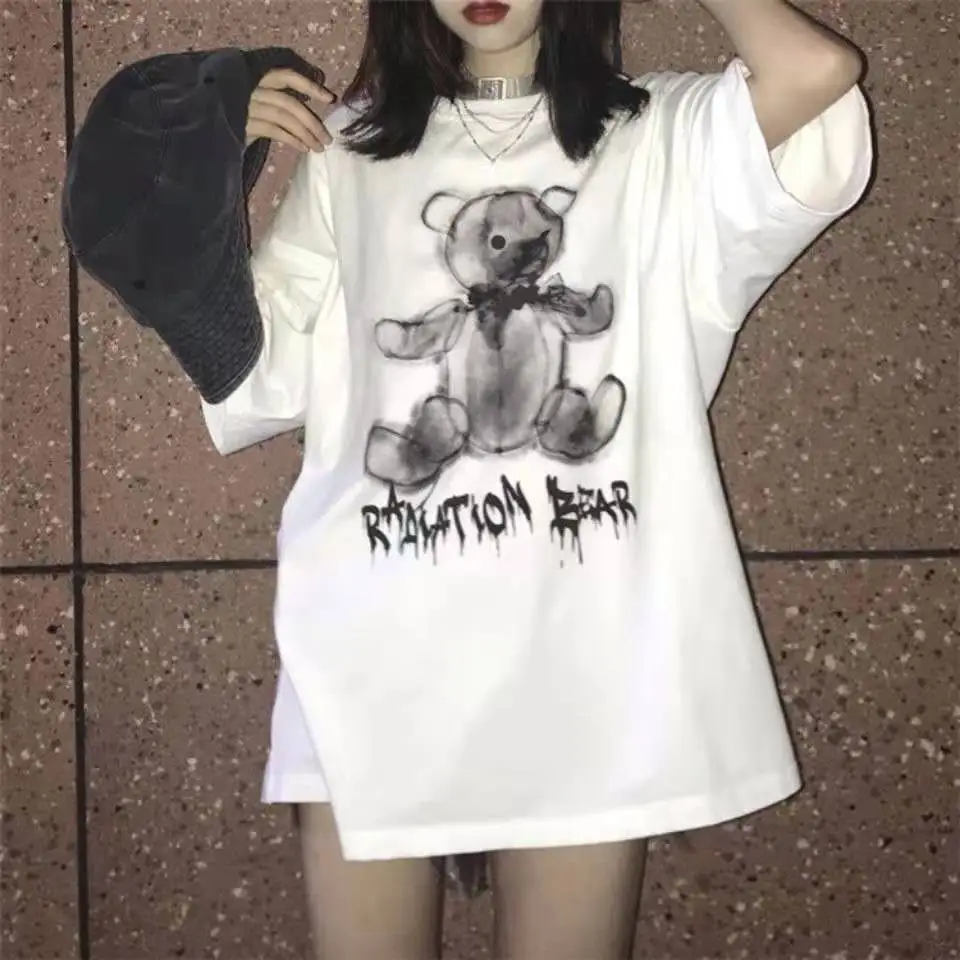 Футболка женская оверсайз в японском стиле, уличная одежда с рисунк...
