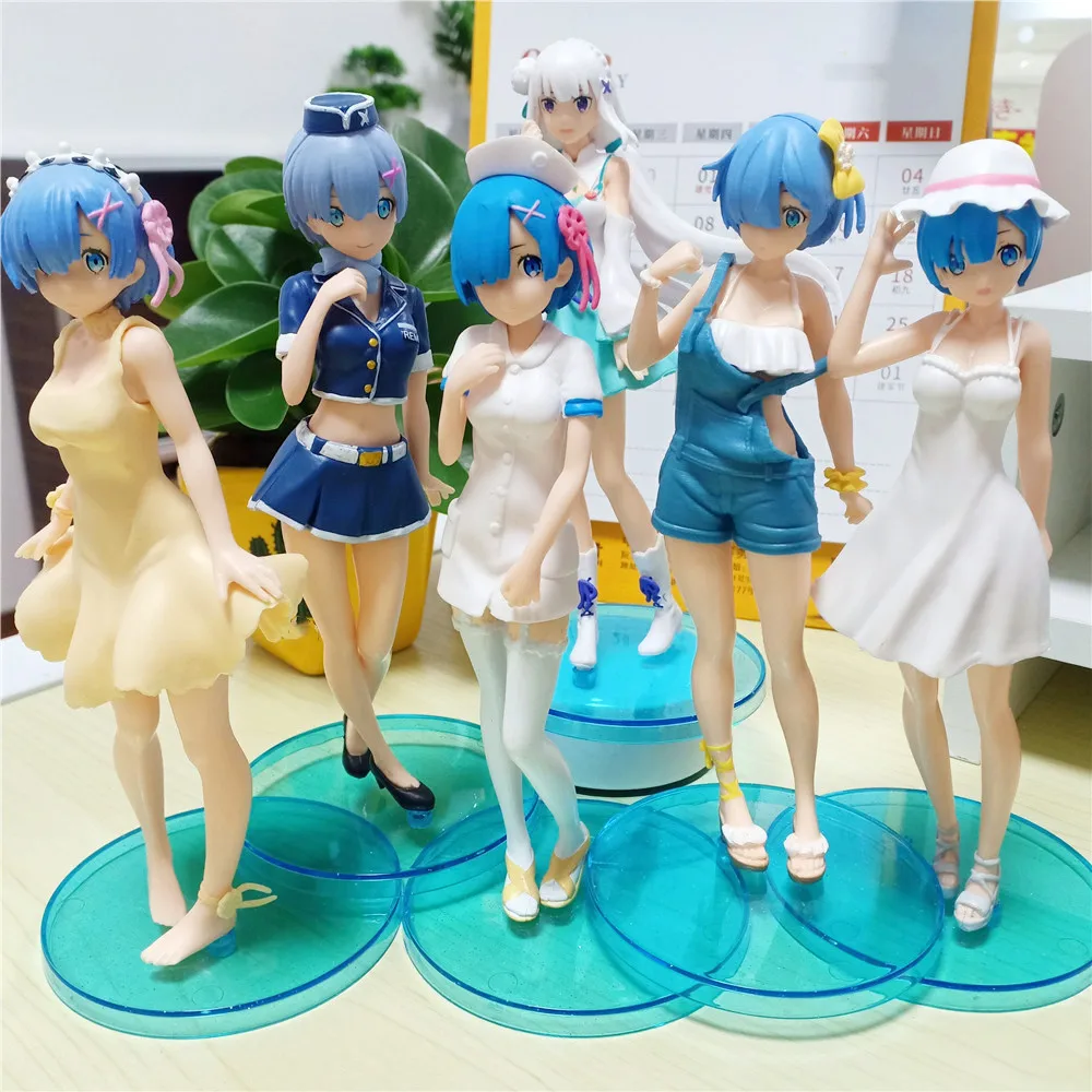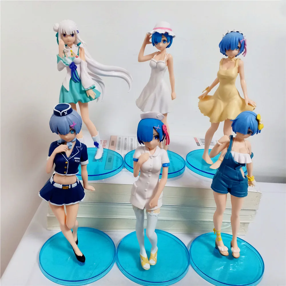 Экшн-фигурка аниме Re: жизнь в другом мире от нуля Рем, купальная одежда из денима с ремешком, Коллекционная модель из ПВХ, игрушки для кукол, подарок, 7 шт.компл.