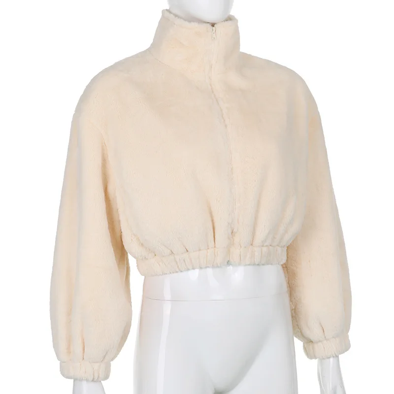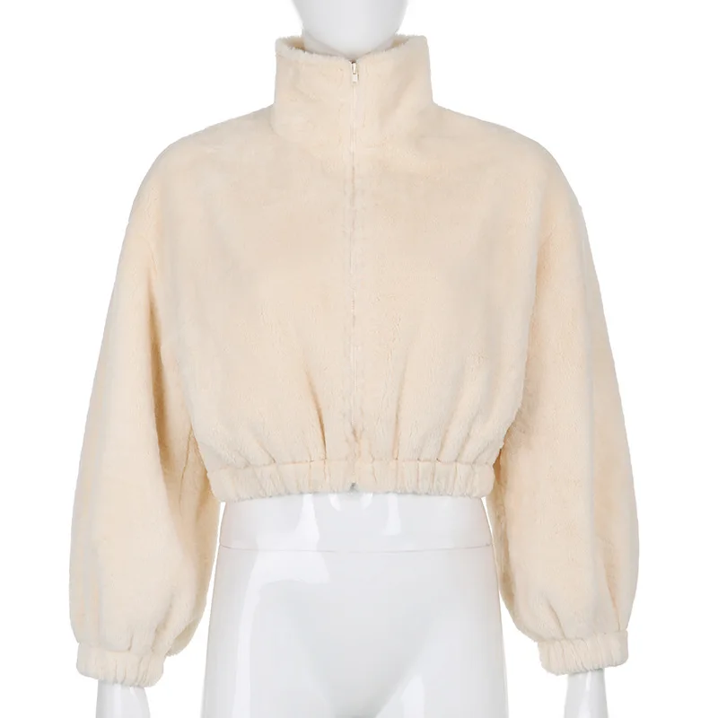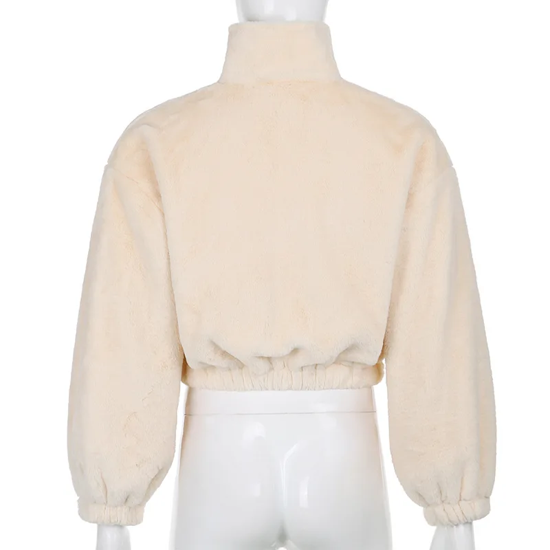 Однотонная мягкая пушистая женская зимняя укороченная куртка женские пальто 2021 Осенняя водолазка теплый воротник из искусственного меха Верхняя одежда на молнии с длинным рукавом