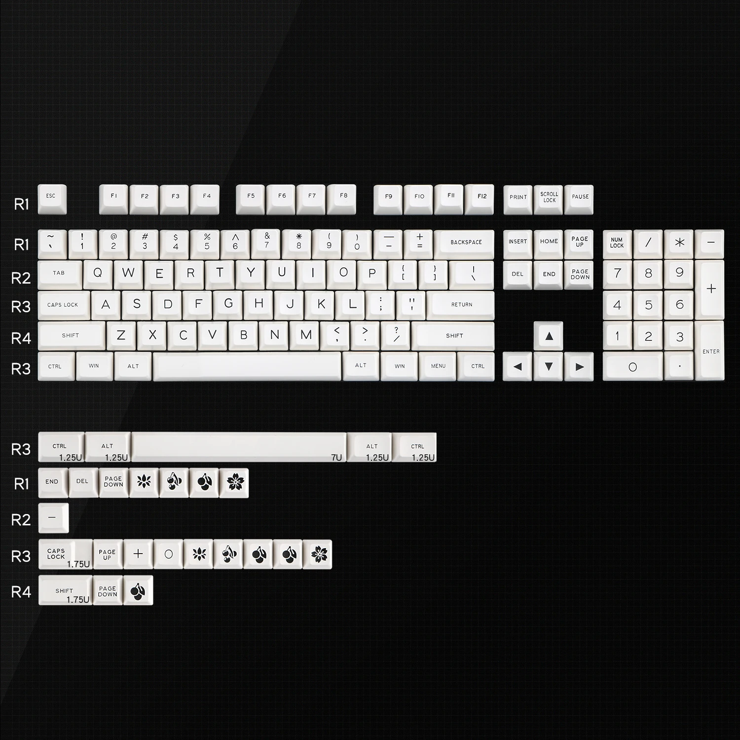 Клавишные колпачки для мини-механической клавиатуры, белые, с двойным изображением, для игровой мини-механической клавиатуры, 129 клавиш, для GH60, GK61, SK64, RK858