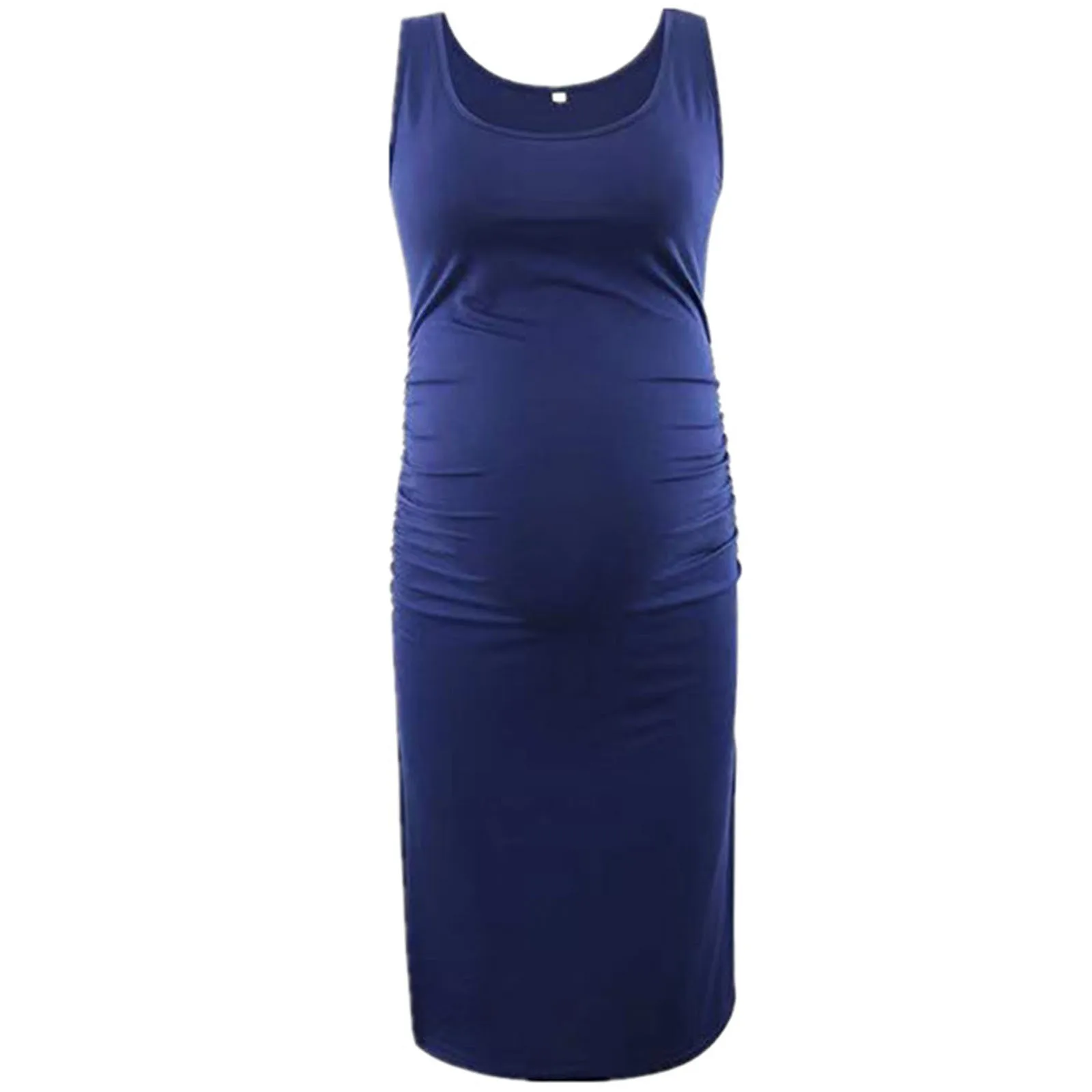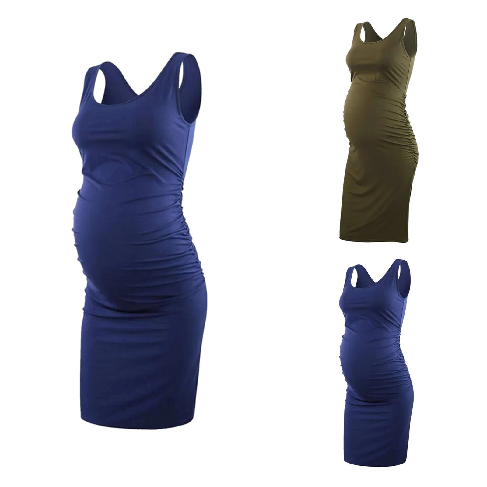 Летнее однотонное платье для беременных женщин без рукавов с квадратным вырезом платья для беременных Одежда для мам халат Женская одежда для беременных женщин