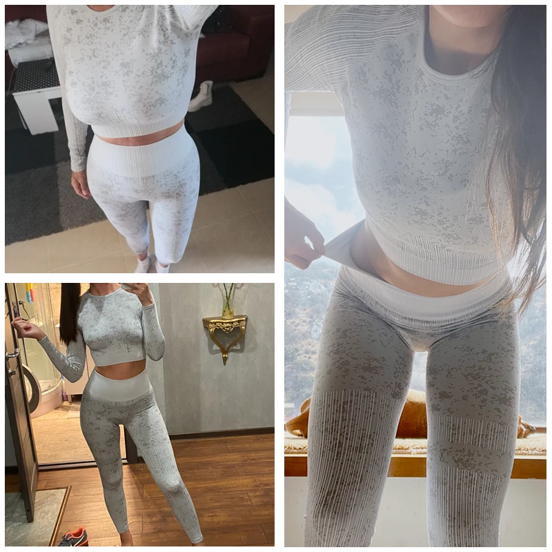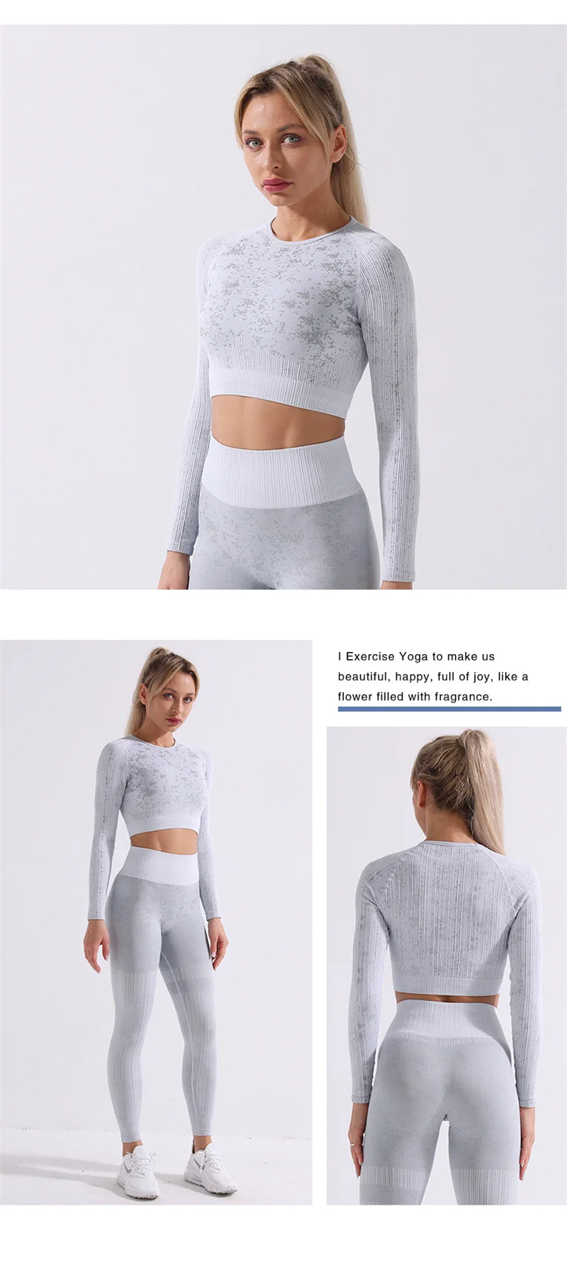 Бесшовный комплект для йоги, Женский комплект из двух предметов, короткий топ с длинным рукавом, футболка, леггинсы, спортивный костюм, одежда, одежда для тренажерного зала, спортивная одежда для фитнеса