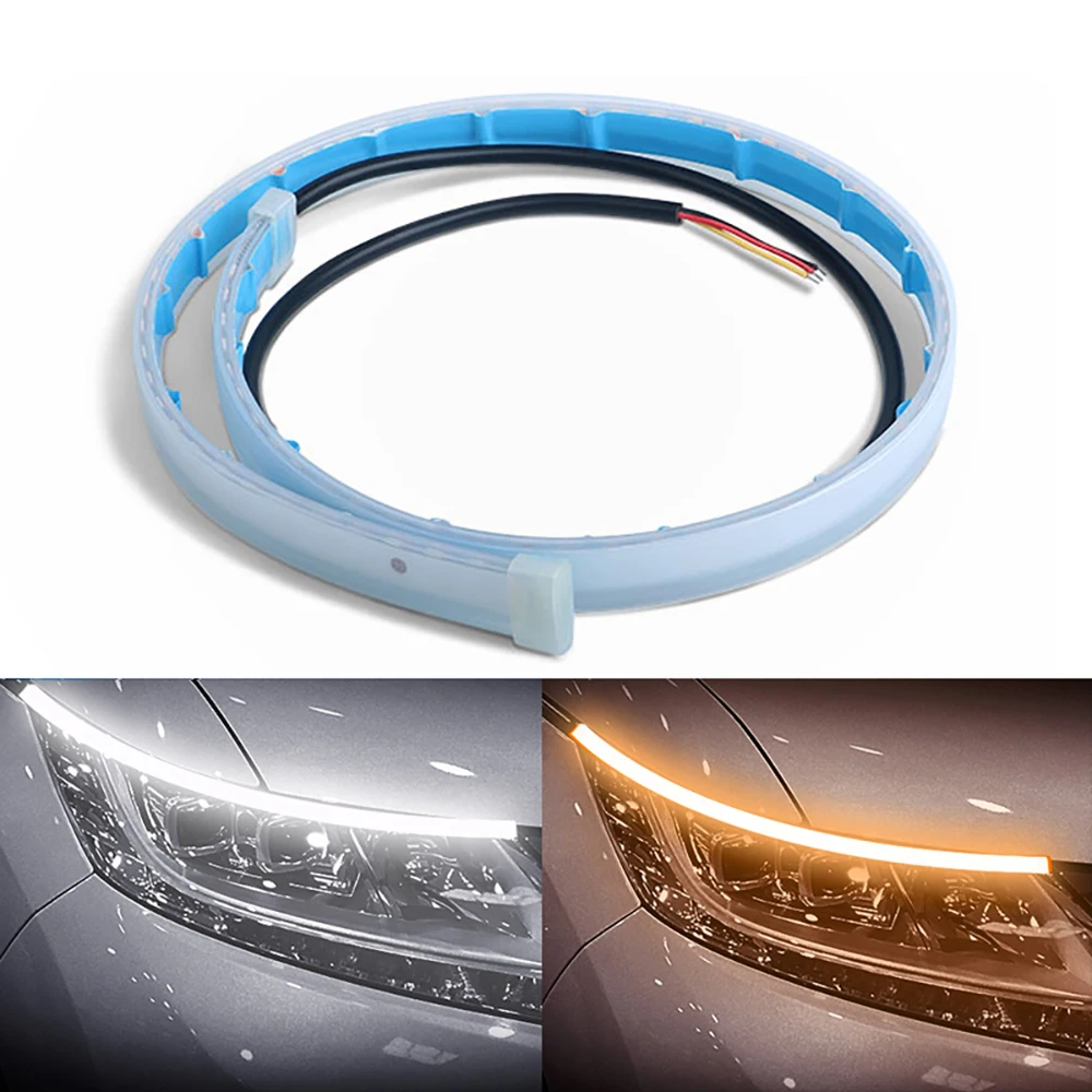 2 шт. светодиодный DRL автомобильный дневной ходовой светильник Гибкая Водонепроницаемая полоса Авто головной светильник s Белый указатель поворота желтый тормозной поток светильник s 12V