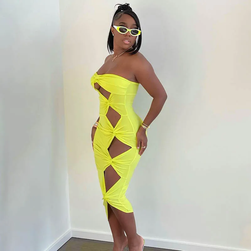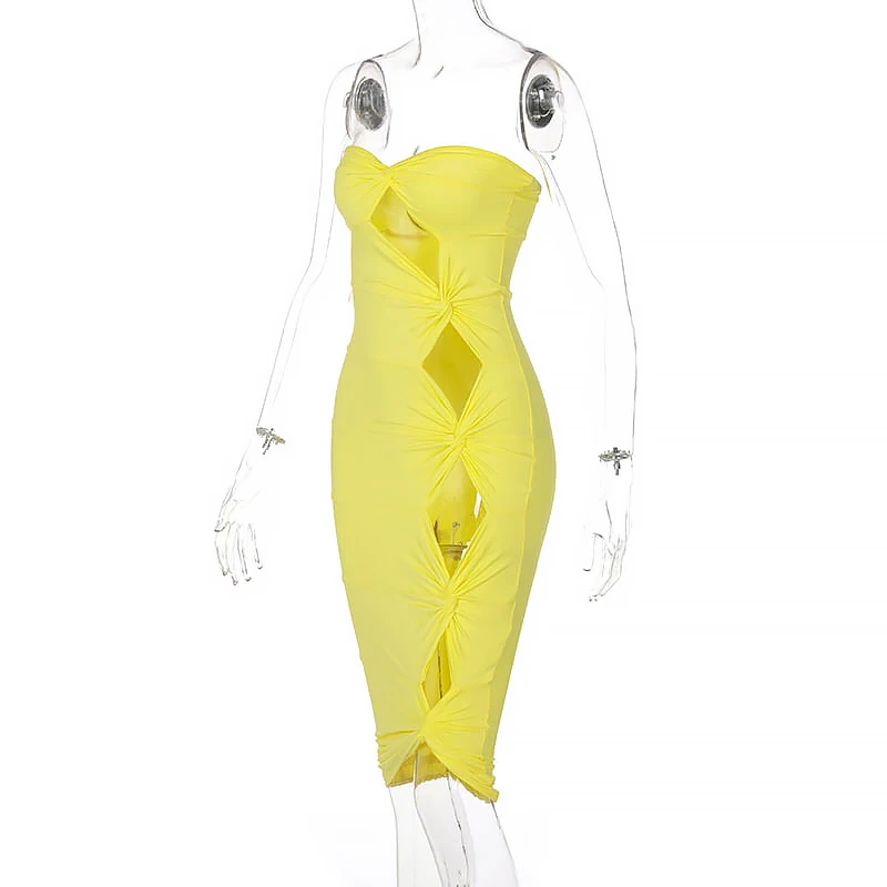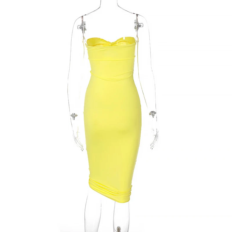 Пикантное летнее желтое платье-футляр миди с рюшами, элегантная Клубная одежда для вечеринок