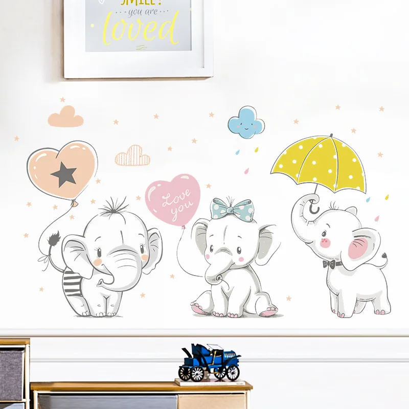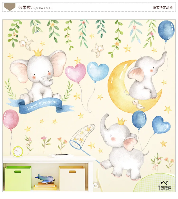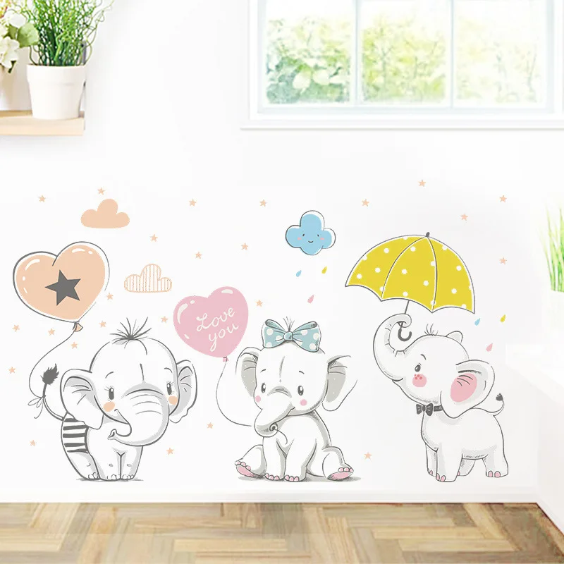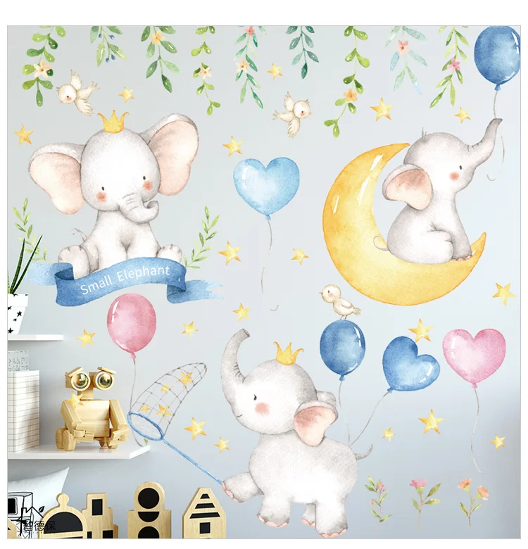 Мультяшный слон воздушный шар книга обои дети Спальня крыльцо настенное украшение самоклеящаяся наклейка на стену