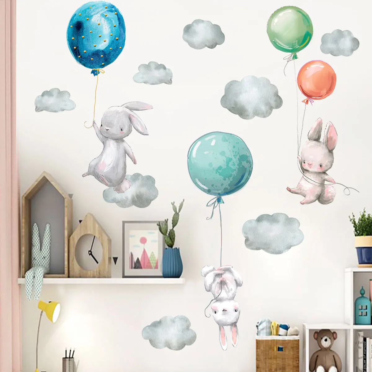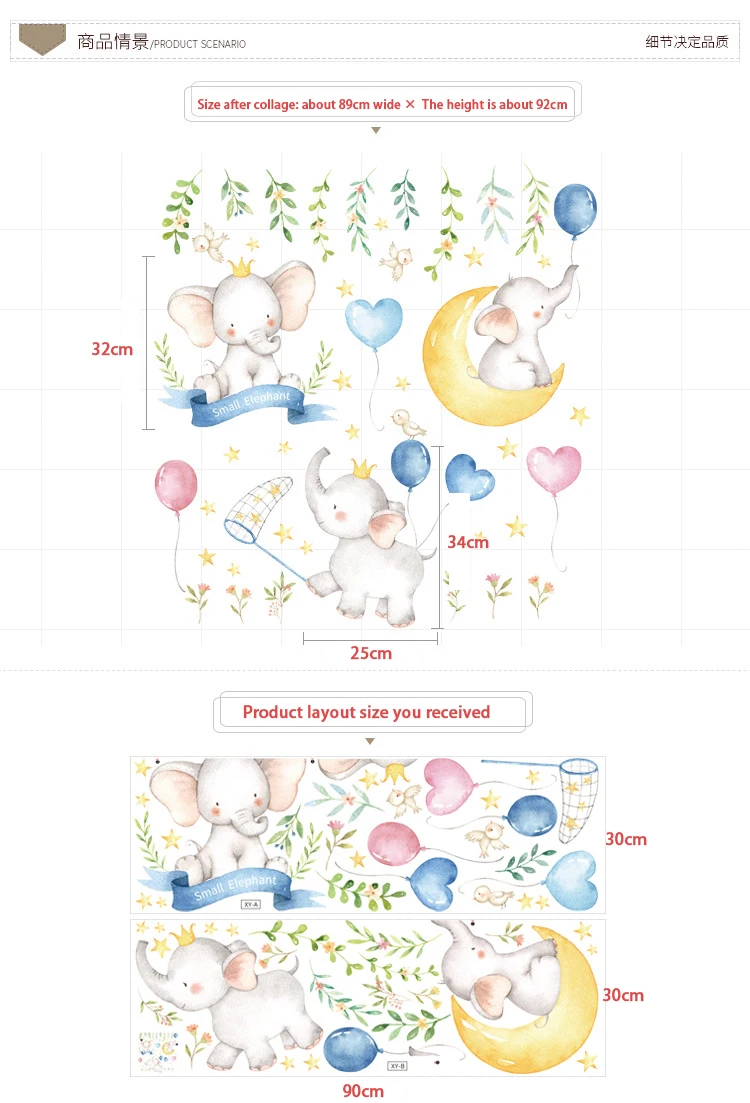 Мультфильм слон воздушный шар книга обои Детская Спальня крыльцо стены украшения стикер Самоклеющиеся