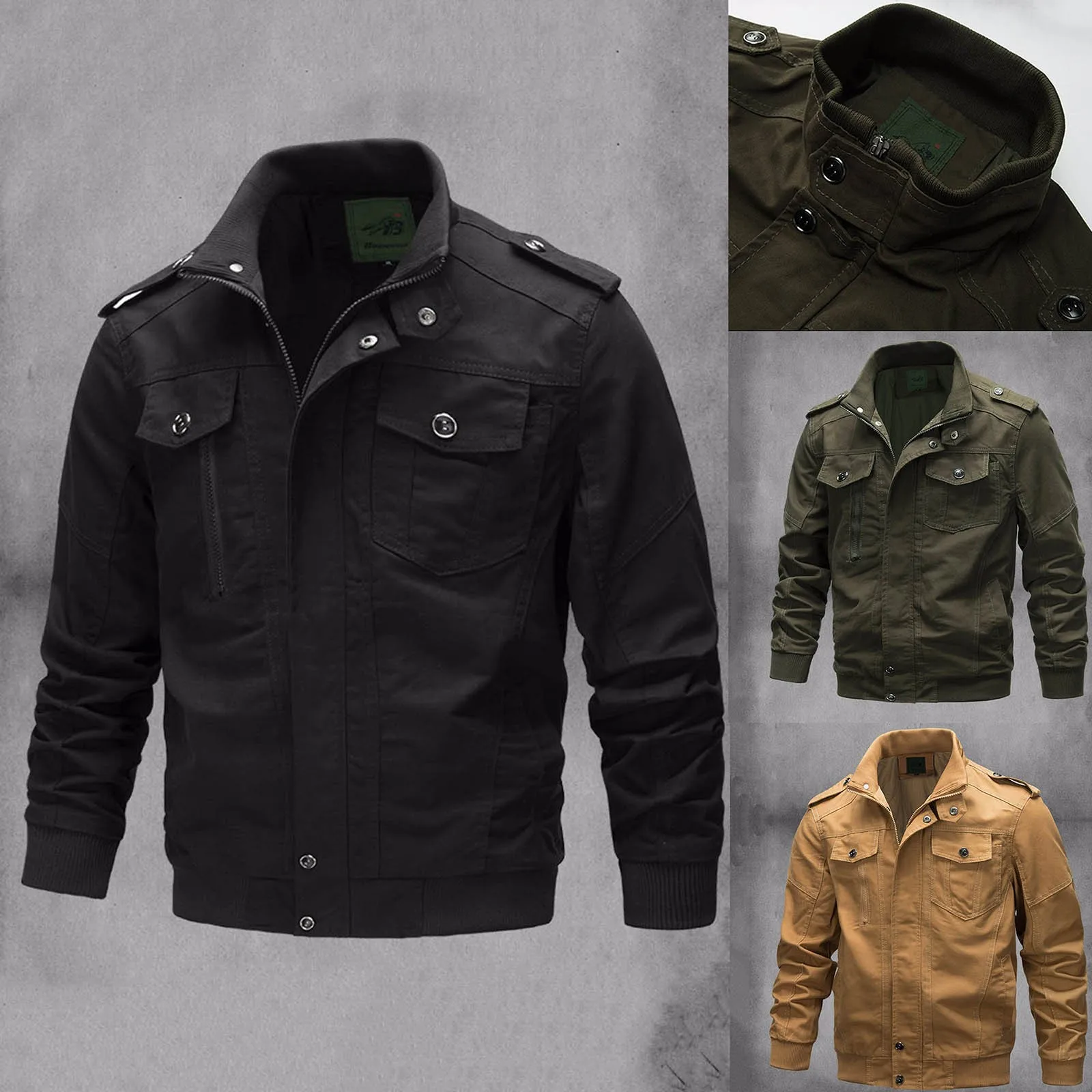 Куртка мужская повседневная в стиле милитари, ветровка свободного покроя на молнии, с карманами, дышащая верхняя одежда, весна-осень