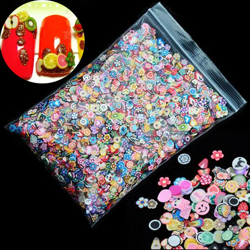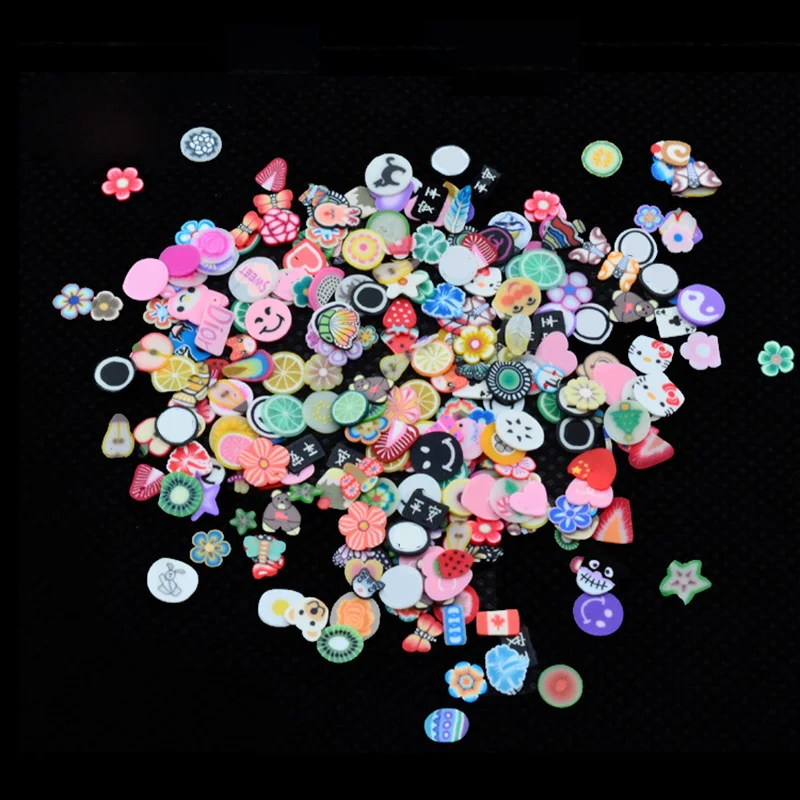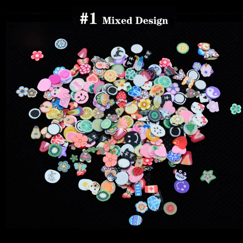 1 упаковка полимерной глины, украшения для ногтей, 3d украшения для ногтей, микс 5 мм, цветы, перья, фрукты, Fimo трость для творчества, материалы для ногтей и телефонов