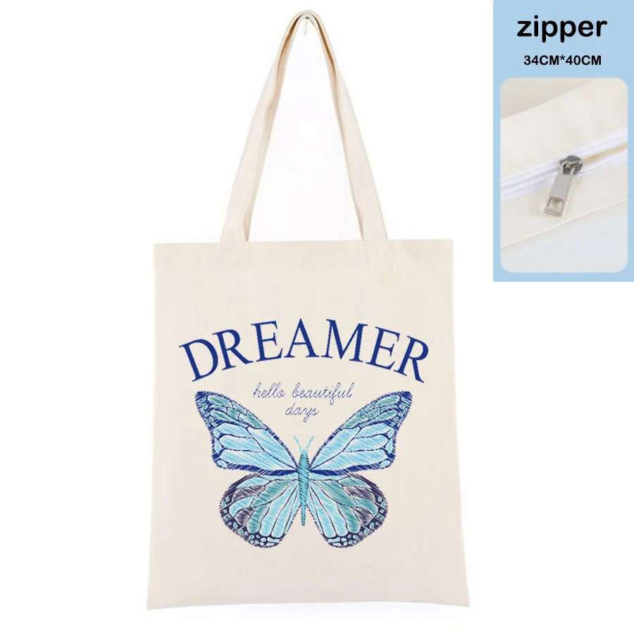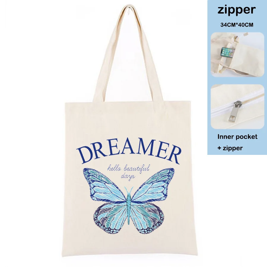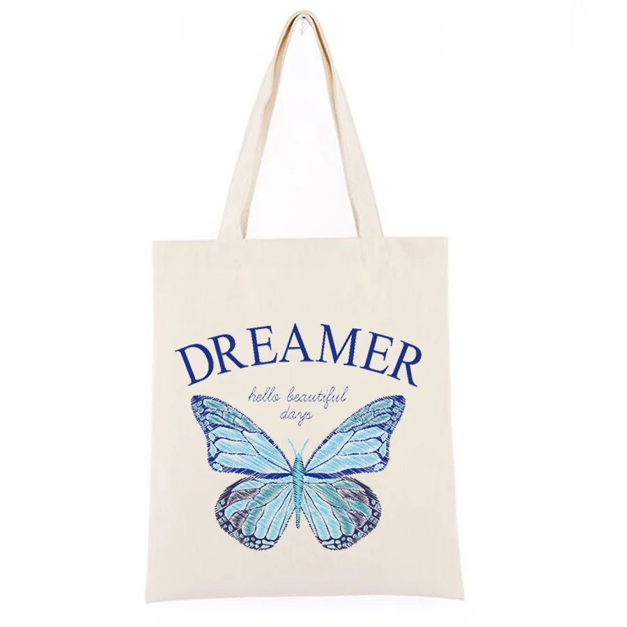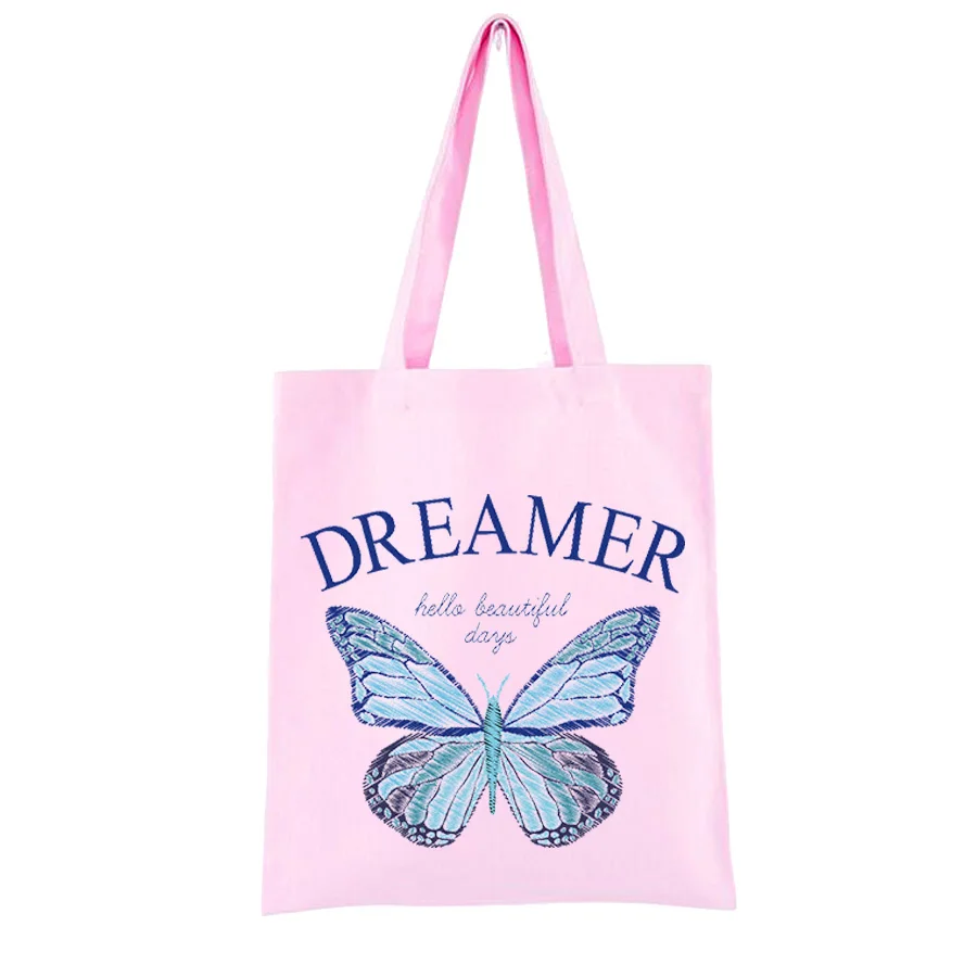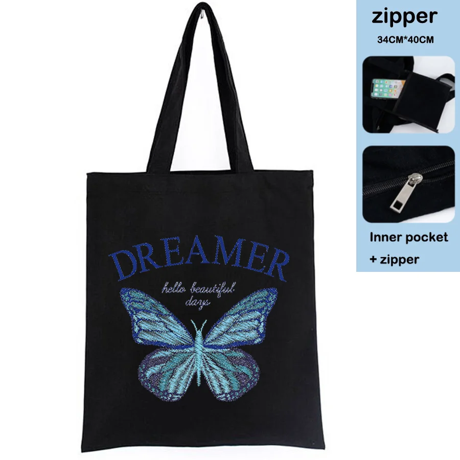 Ледяная зеленая милая сумка для покупок с принтом бабочки, винтажная Женская Холщовая Сумка-тоут, женские ручные сумки, корейские черные сумки-шопперы на плечо