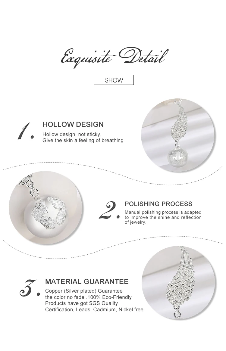 Ожерелье Eudora с подвеской в виде крыла ангела, серебристого цвета
