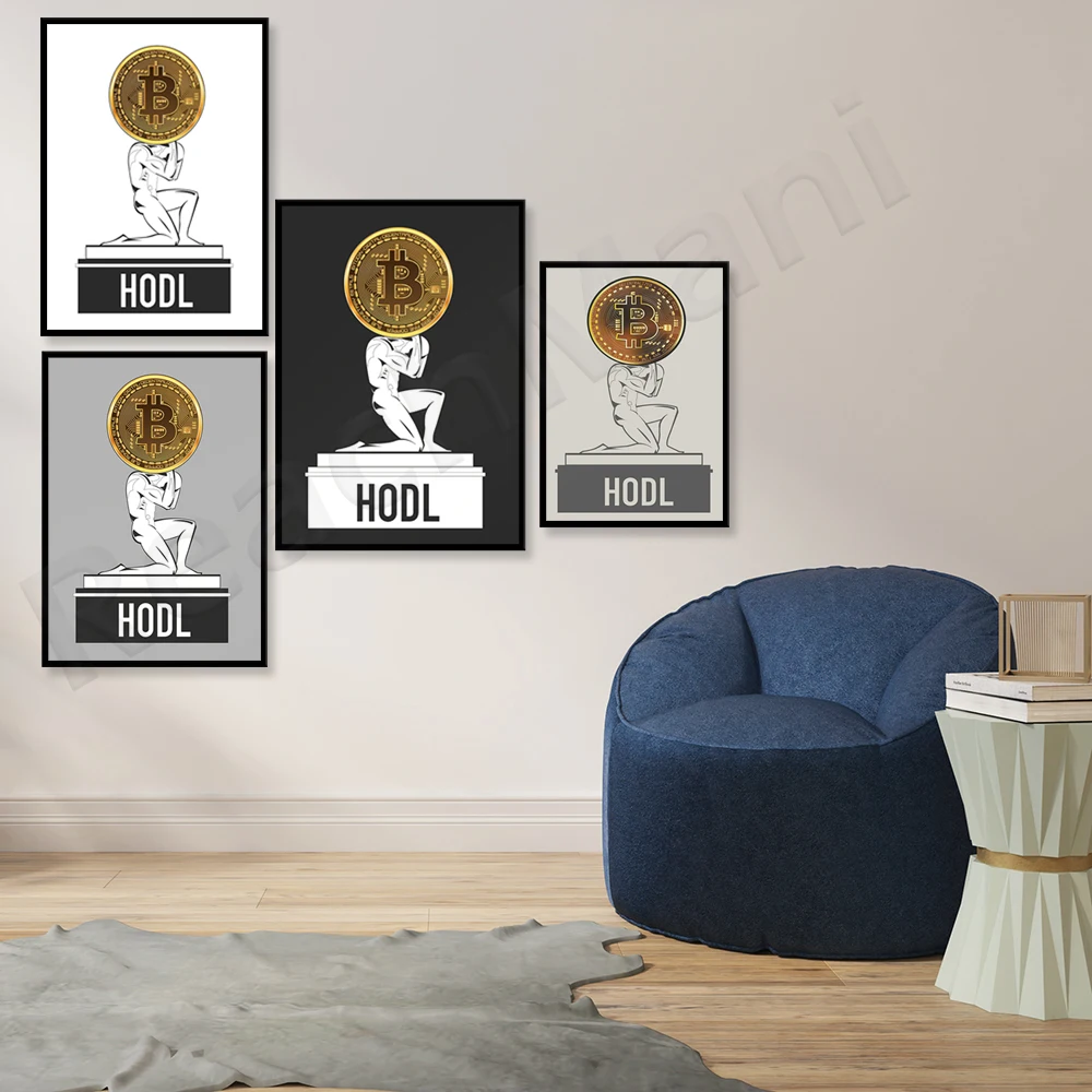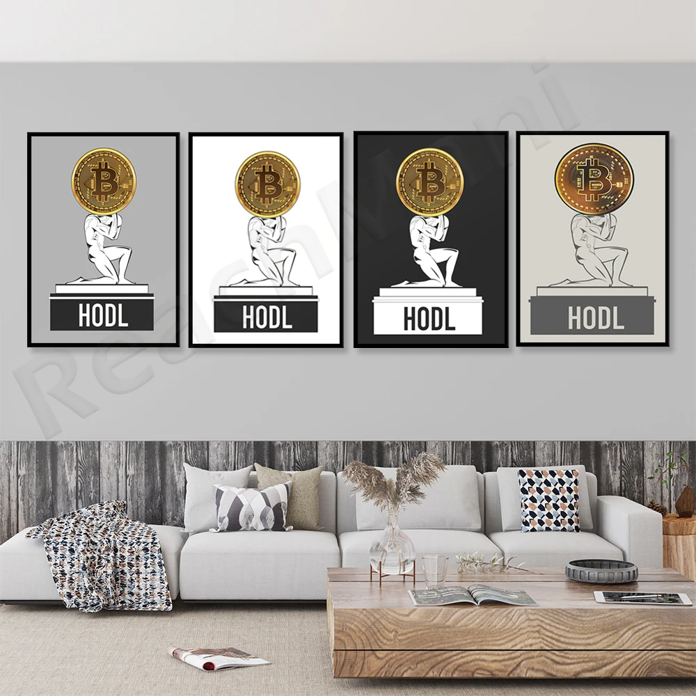 Плакат с изображением биткоина на стену, современное офисное украшение холст, подарок для криптовалюты