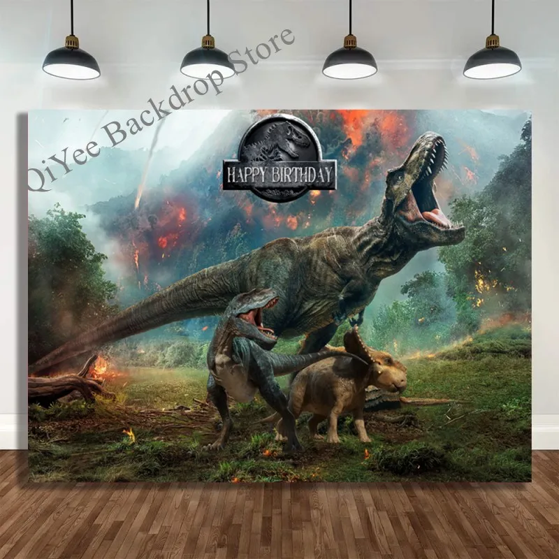 Фон с изображением вулкана Юрского периода для детской фотосъемки