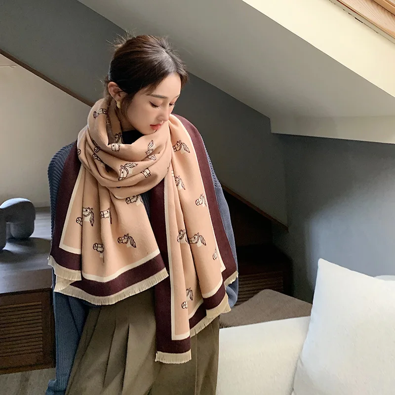 Зимний роскошный брендовый дизайнерский Женский кашемировый шарф 2021, мягкий двухсторонний жаккардовый теплый шарф с принтом, шаль