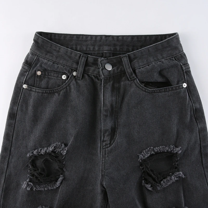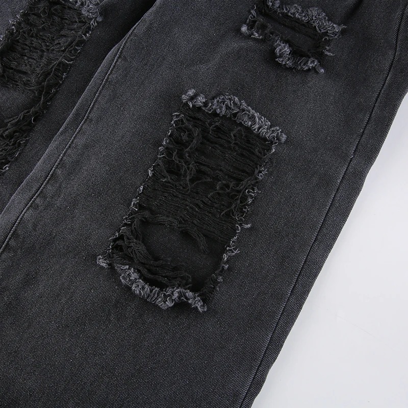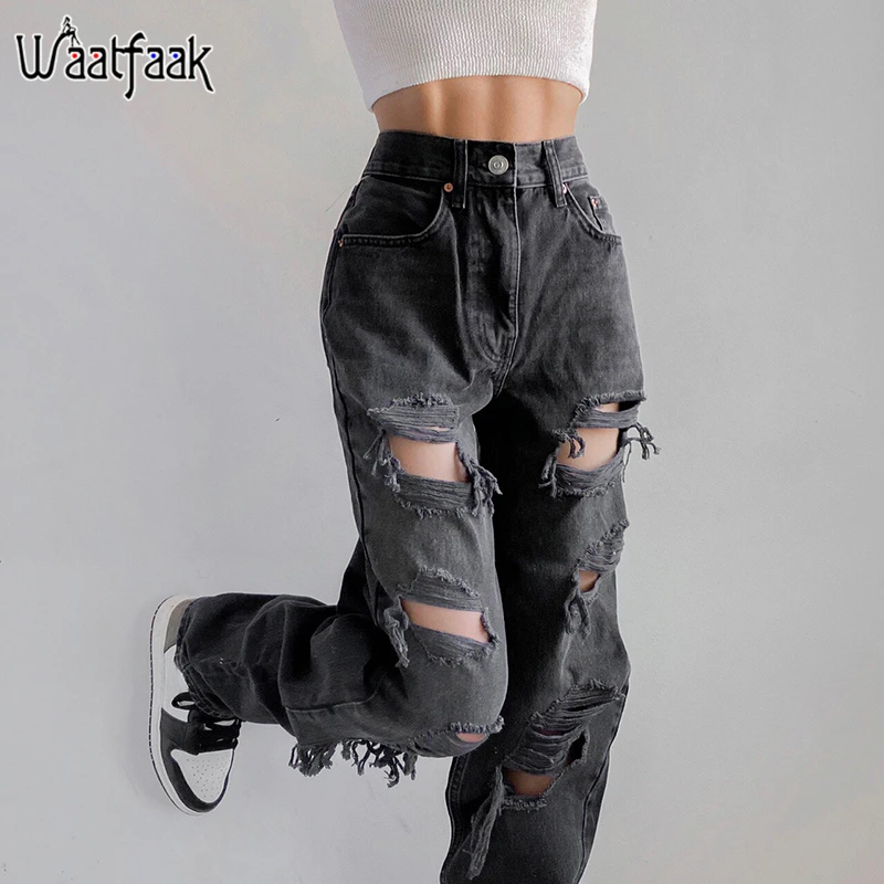 Женские рваные джинсы с вырезами Waatfaak, уличная одежда с высокой талией, черные мешковатые джинсы в стиле 90-х, брюки в стиле хиппи, джинсы-карго, Egirl