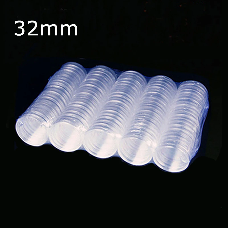 Прозрачные пластиковые защитные контейнеры для капсул, 100 шт., 32 мм, чехол для коллекции токенов, настольных игр, монет