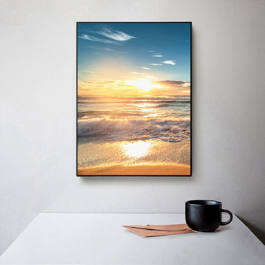 Картина морской пейзаж восход солнца облака волны пляж Холст Картина стена фотография Гостиная Кабинет домашний декор