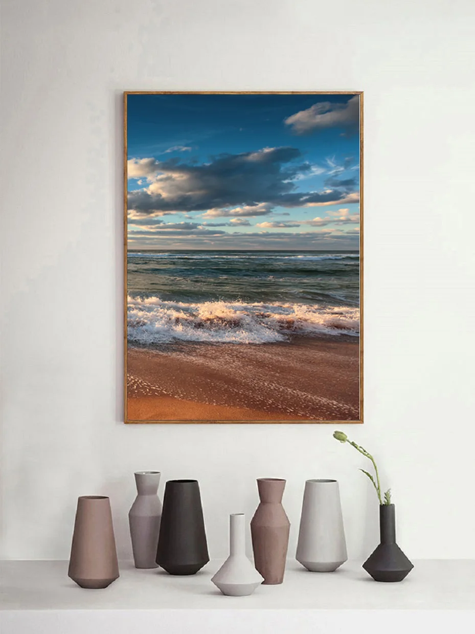 Скандинавский минимализм красивый пляж, волны океана, красота, холс...