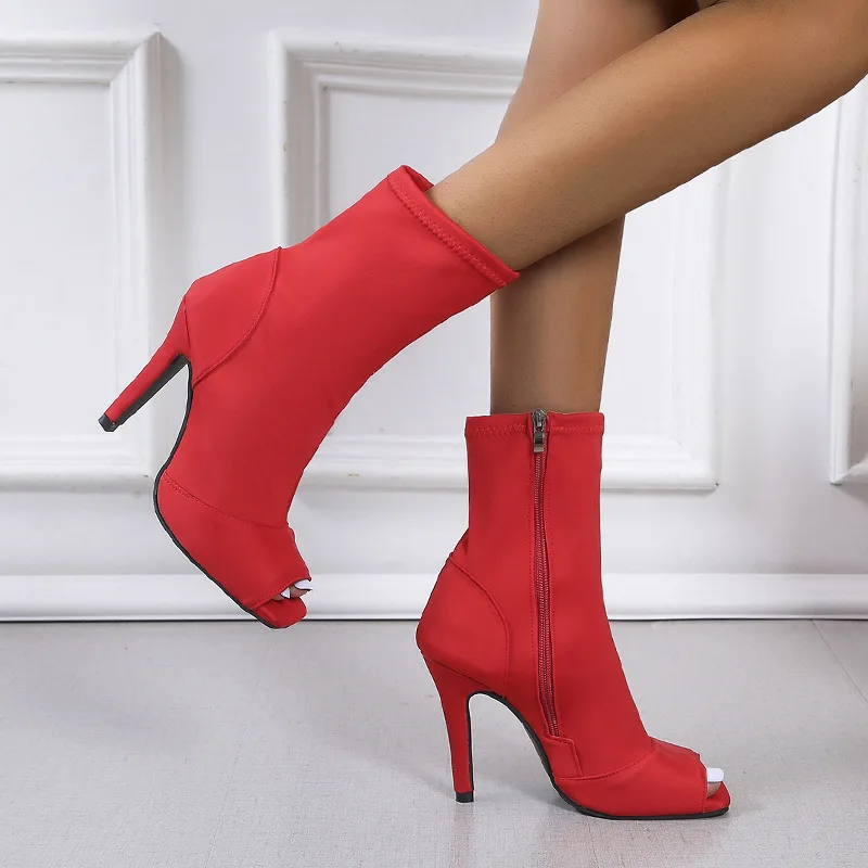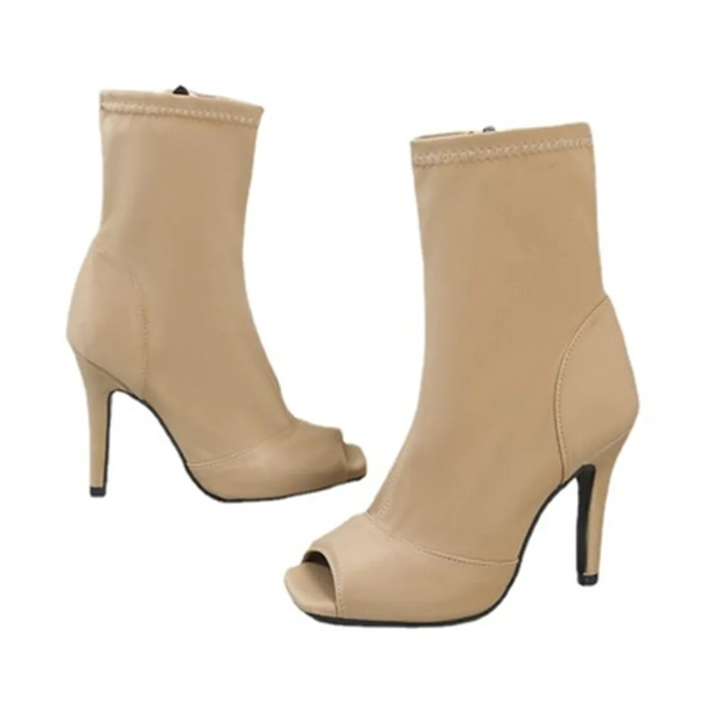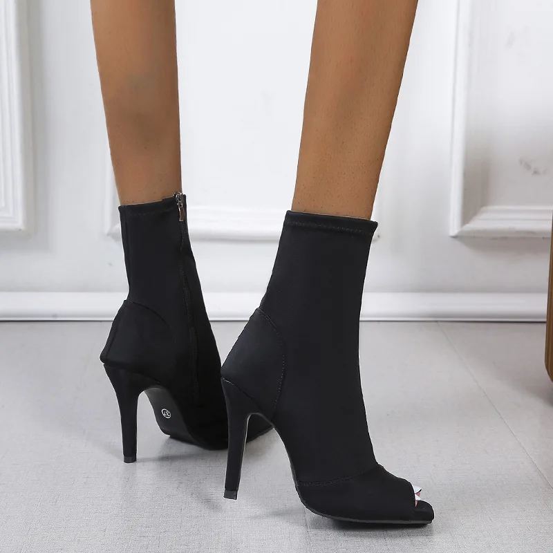 Женские сапоги стрейч, на высоком каблуке 10 см, с открытым носком,...