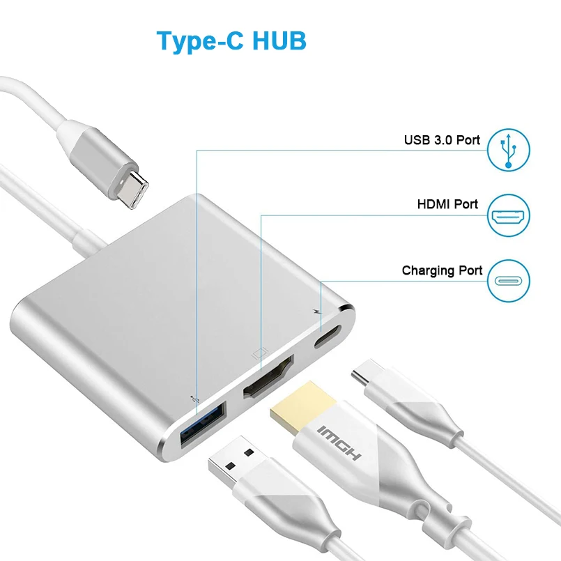 Переходник USB-CHDMI, USB 3,1, концентратор Type-C на HDMI 4K + USB...