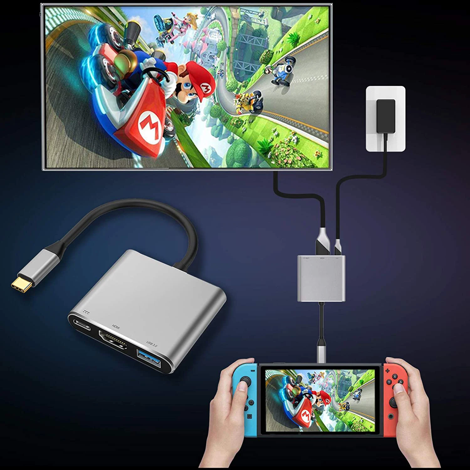 USB C к HDMI 3 в 1 мультипортовый адаптер Type C Thumderbolt 3 к HDMI 4K видео конвертерUSB 3,0 концентратор порт PD порт для быстрой зарядки