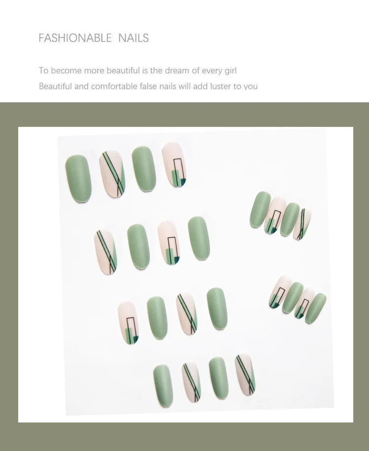 Хит продаж, 24 шт., зеленые накладные ногти, тип клея, съемный длинный абзац, Модный маникюр, накладные ногти, накладные ногти, подарки для девочек