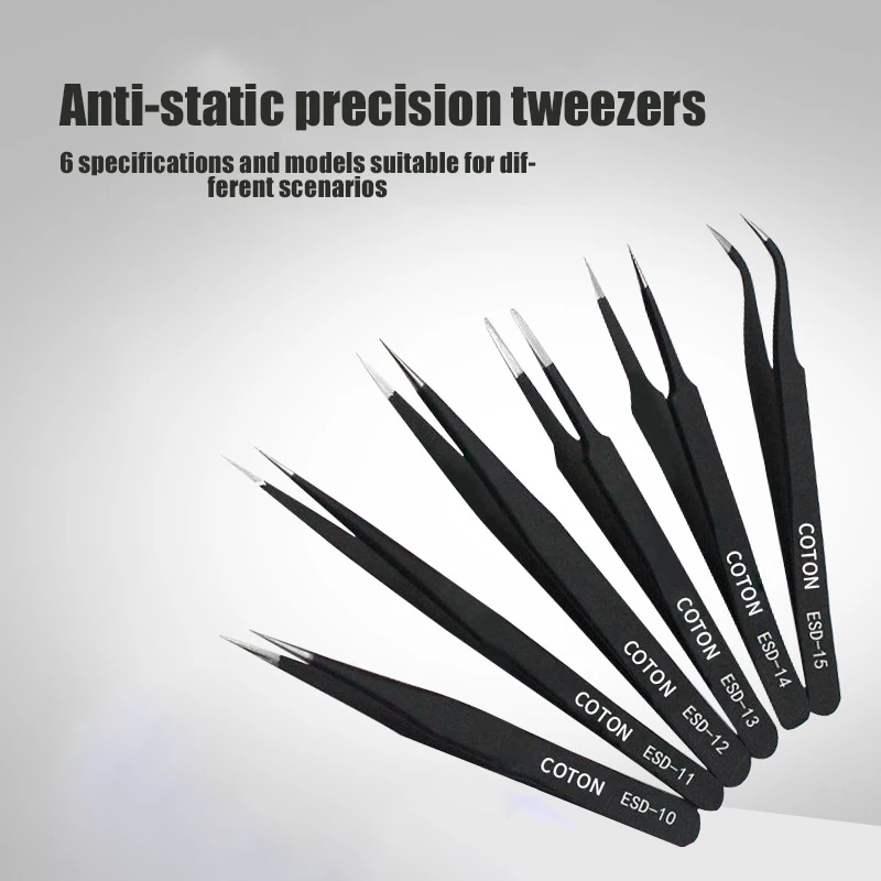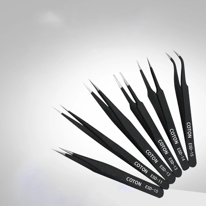 Антистатические ESD пинцеты из нержавеющей стали инструменты для технического обслуживания промышленные точные изогнутые прямые пинцеты ремонтные инструменты