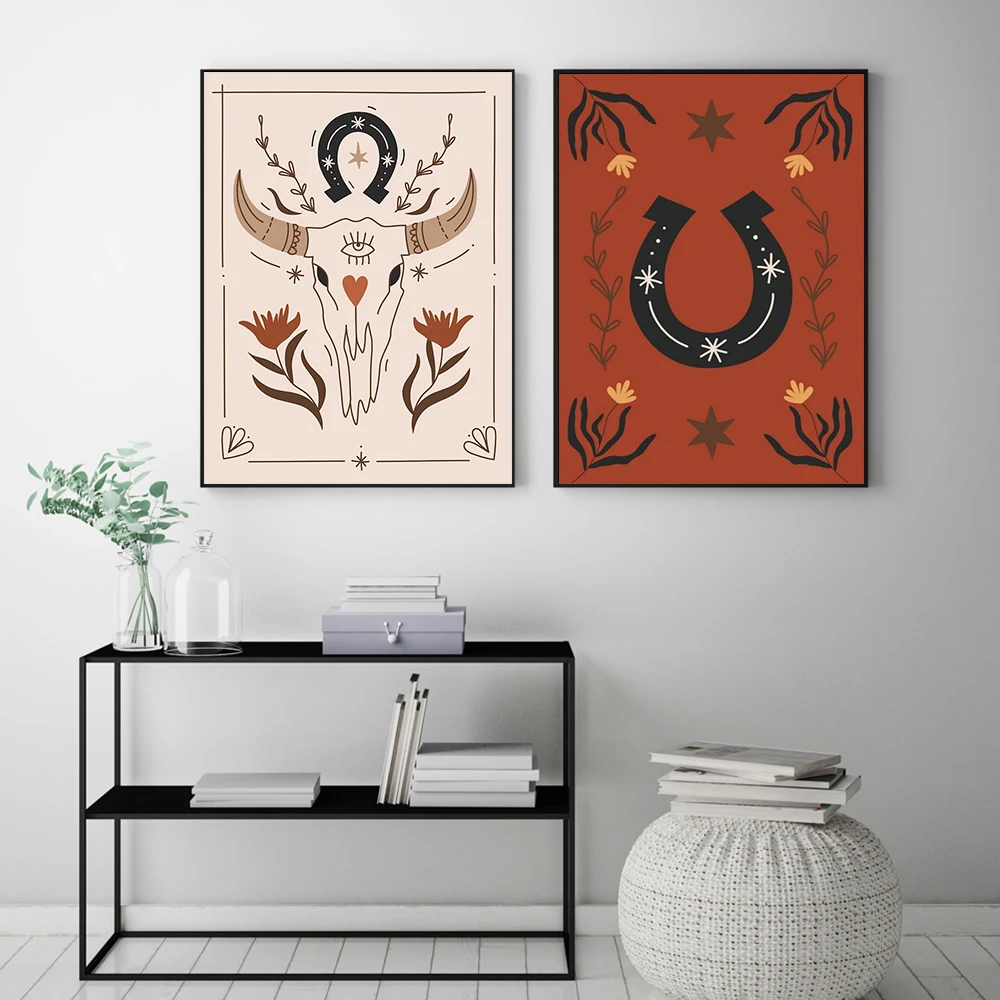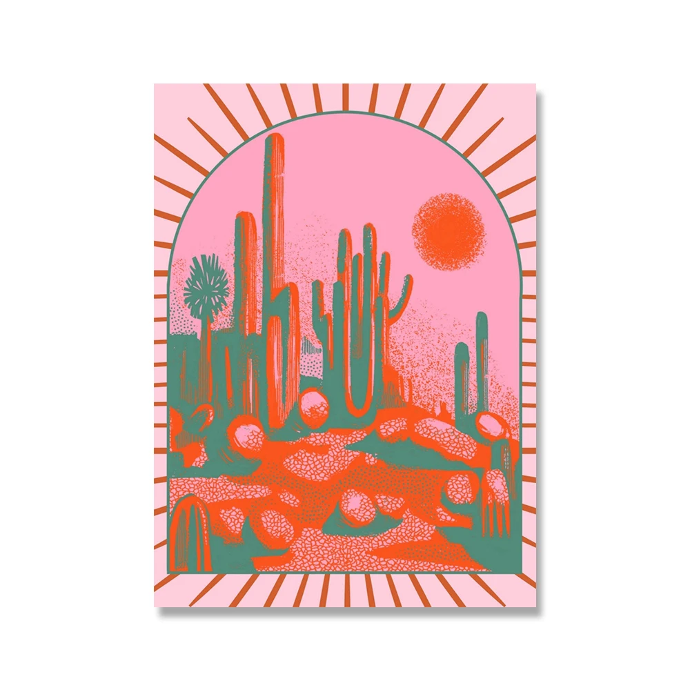 Абстрактный пейзаж пустыня кактус художественные плакаты живопись Западный Бохо принты Подкова стена искусство холст скандинавские Картины домашний декор