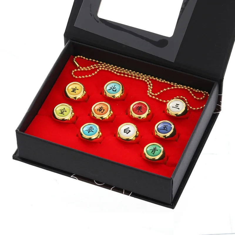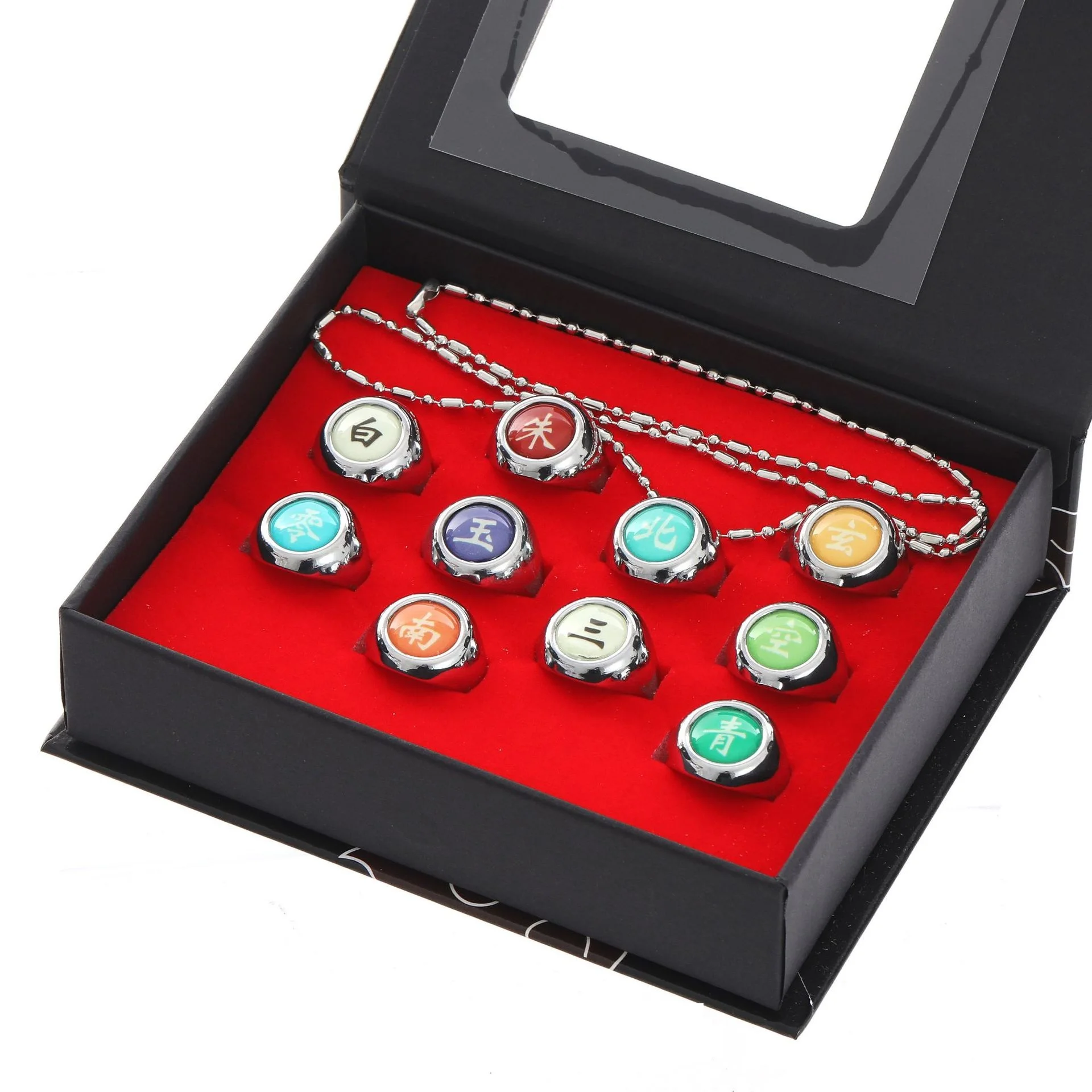 10 шт.компл. мультфильм Akatsuki Shippuuden ювелирные изделия Косплей Аниме кольца ниндзя модный стол Akatsuki металлическое кольцо набор аксессуаров