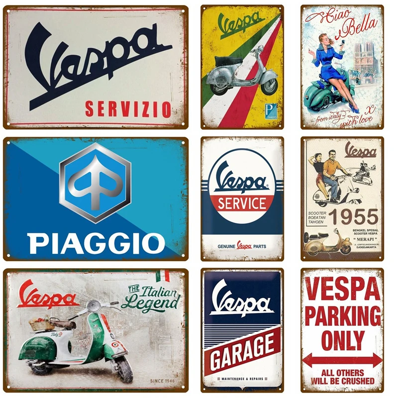 Металлический винтажный настенный плакат Vespa для гаража, винтажный Ретро-постер для комнаты, домашний промышленный подвесной декор, жестяная арт-вывеска